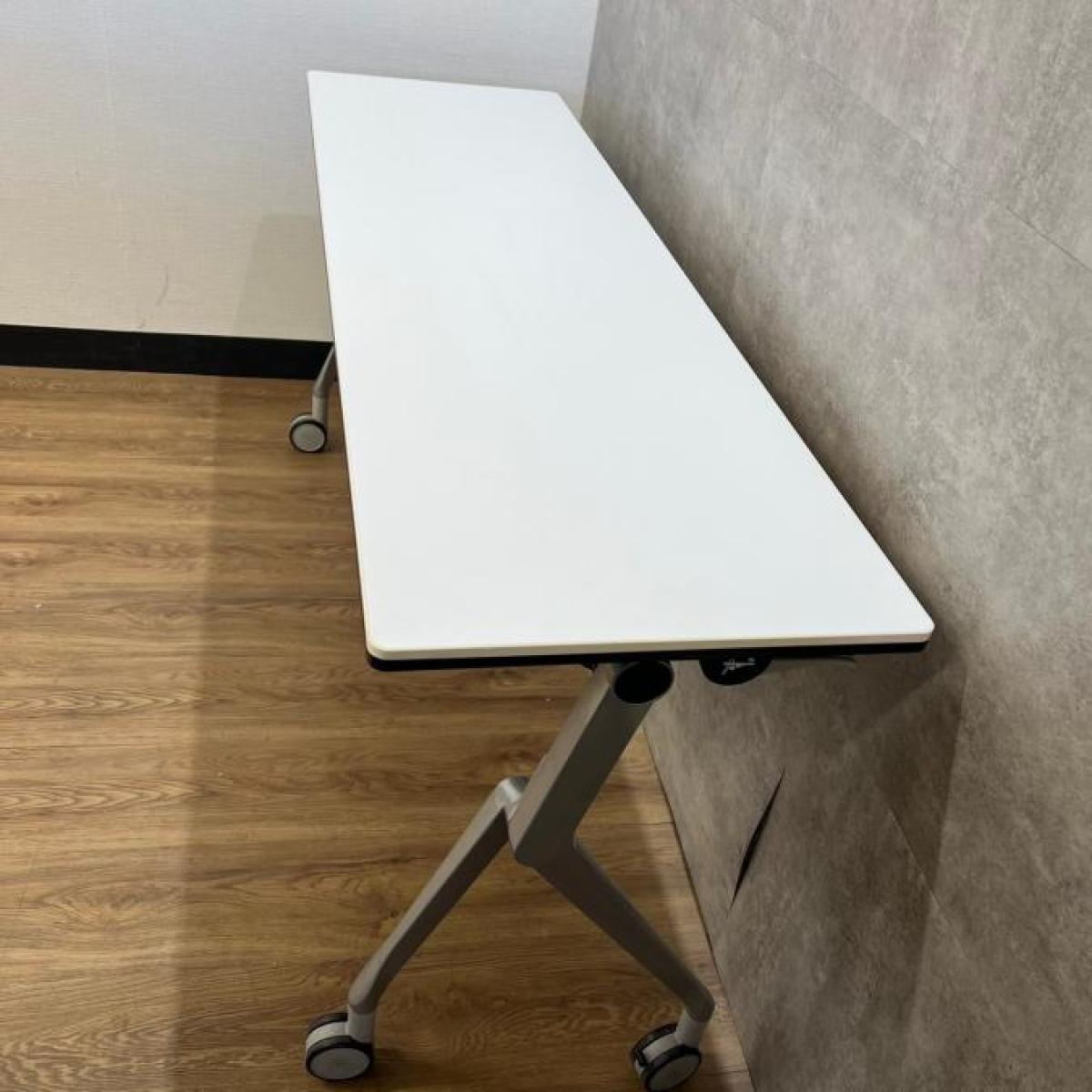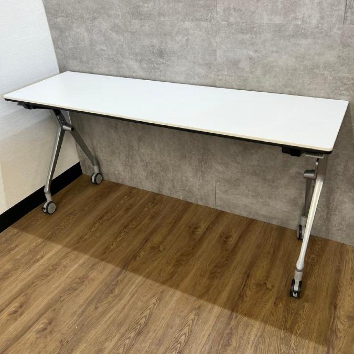 【折りたたみ収納が秀逸!スタイリッシュなデザインで高品質!】■オカムラ(okamura)製 インターアクトNT(INTER ACTNT) サイドスタックテーブル W1800×D450×H720mm ■配線カバー無し ■幕板無し ■キャスター付 ■ホワイト- つくば店