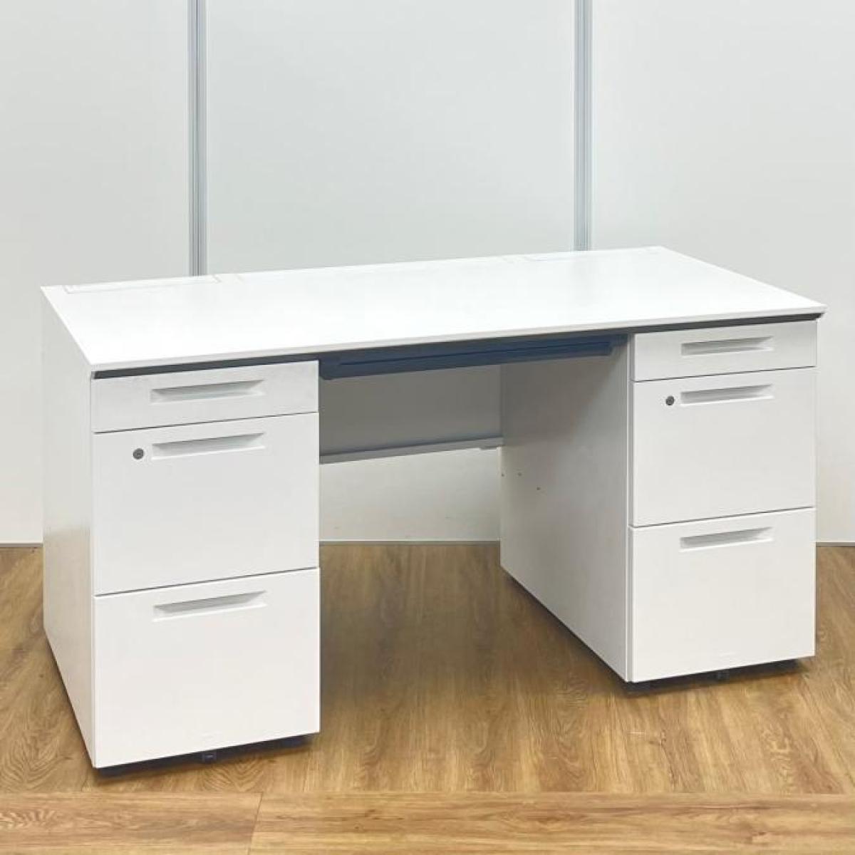 【在庫入替セール】コクヨ iSシリーズ 両袖机 W1400の定番サイズ ホワイト 鍵付き シリンダー錠 両側の引き出しで大容量の収納が可能 【愛知・名古屋・豊田・静岡・浜松】