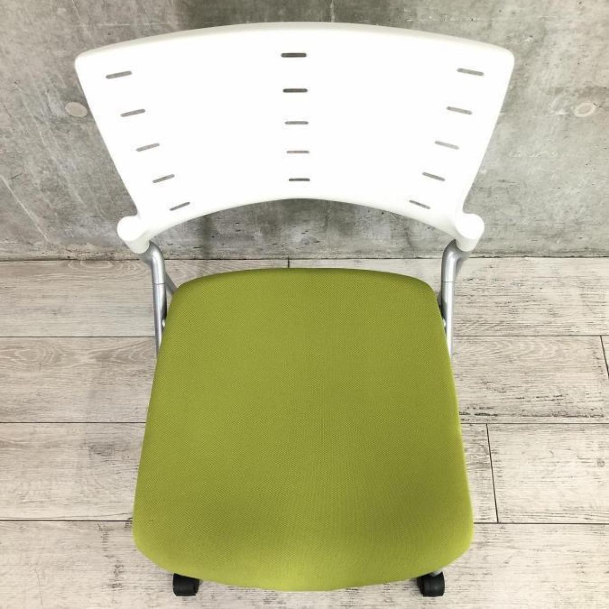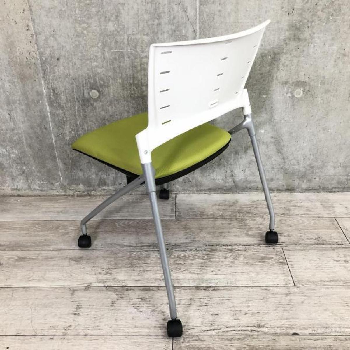 【平行に重ねて省スペース!使い勝手抜群のミーティングチェア!】■イトーキ(ITOKI) マノス(Manos) ネスティングチェア ミーティングチェア 肘無し 背パッドなし ■モスグリーン×ホワイト ■キャスター付〈岐阜・愛知・三重・静岡・福井〉- 岐阜店