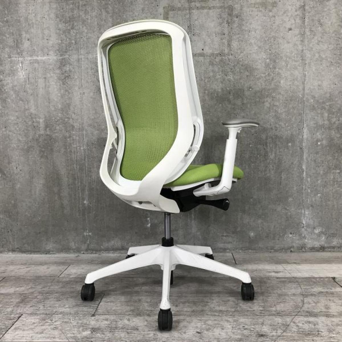 【前傾チルト機能付き!オカムラ製品で最も人気を集める高機能メッシュチェア!】■オカムラ(okamura)製 シルフィ(Sylphy)チェア ハイバック 肘付き ■可動肘 ■ライムグリーン × ホワイトシェル【状態良好品!】