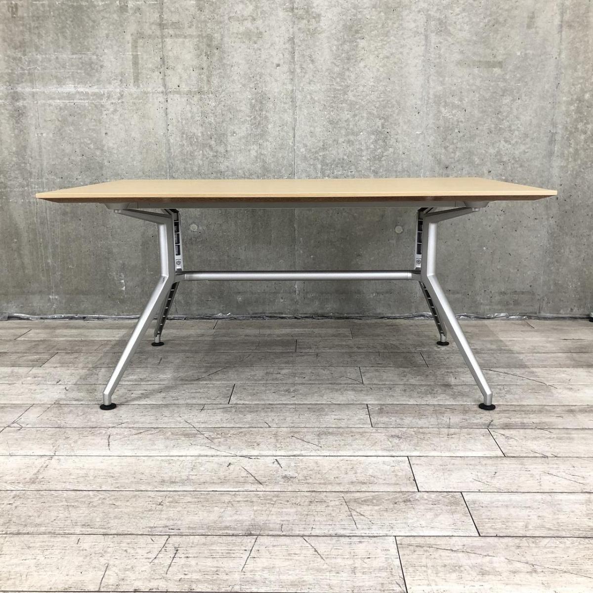 【会議や打ち合わせにオススメの人気ミーティングテーブル!シンプルなデザインで様々な空間にフィットする定番商品!】■イトーキ(ITOKI)製 DDシリーズ ミーティングテーブル 会議用 W1500×D900㎜ ■天板:木目ナチュラル / 脚 シルバー- 足立・葛飾店