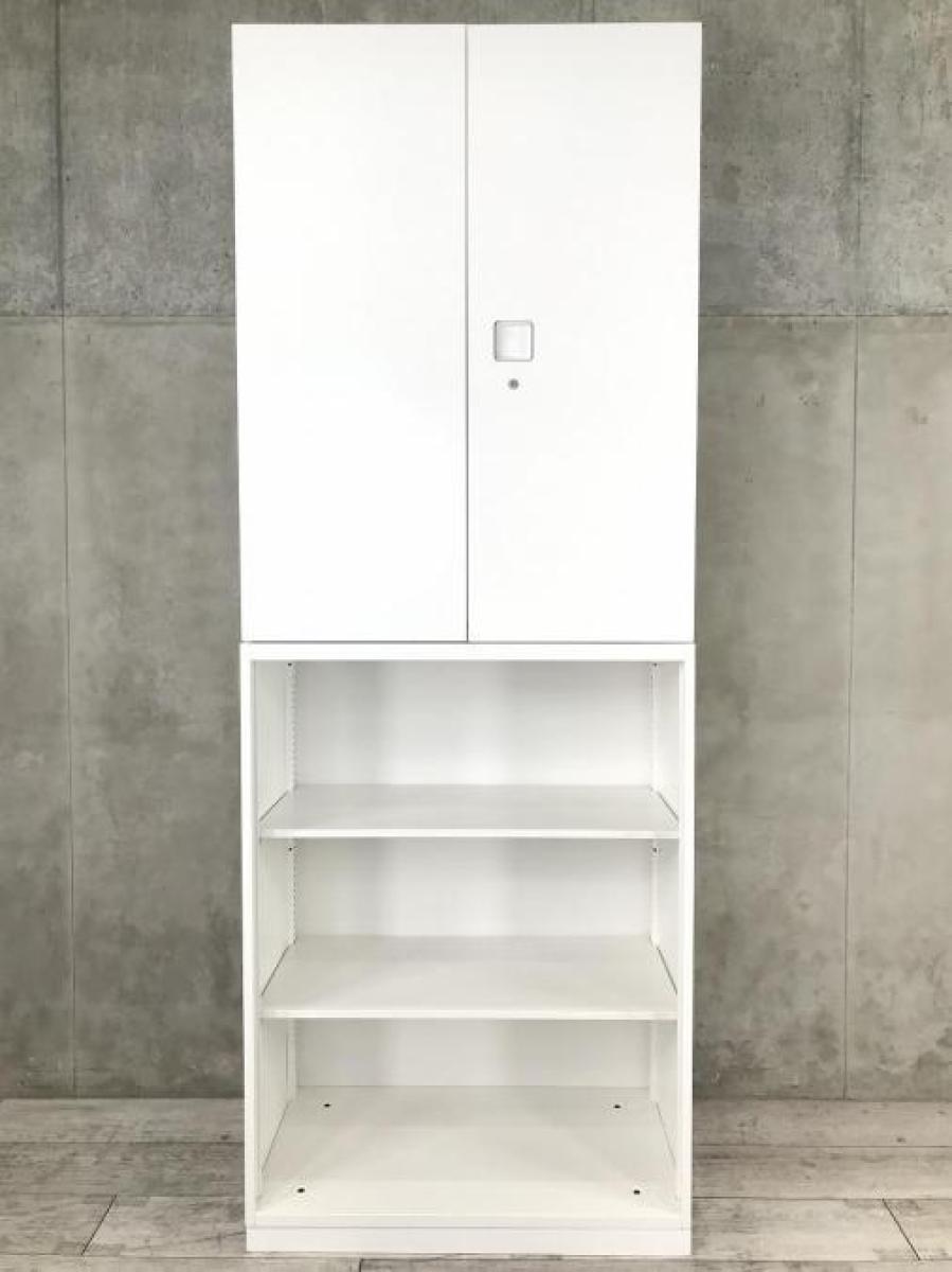 【在庫入替セール品!】使い勝手抜群の上下書庫セット!上段両開き+下段オープン仕様!※オープン書庫に扉外した跡あり ■オカムラ/レクトライン/ホワイト- 立川・八王子店