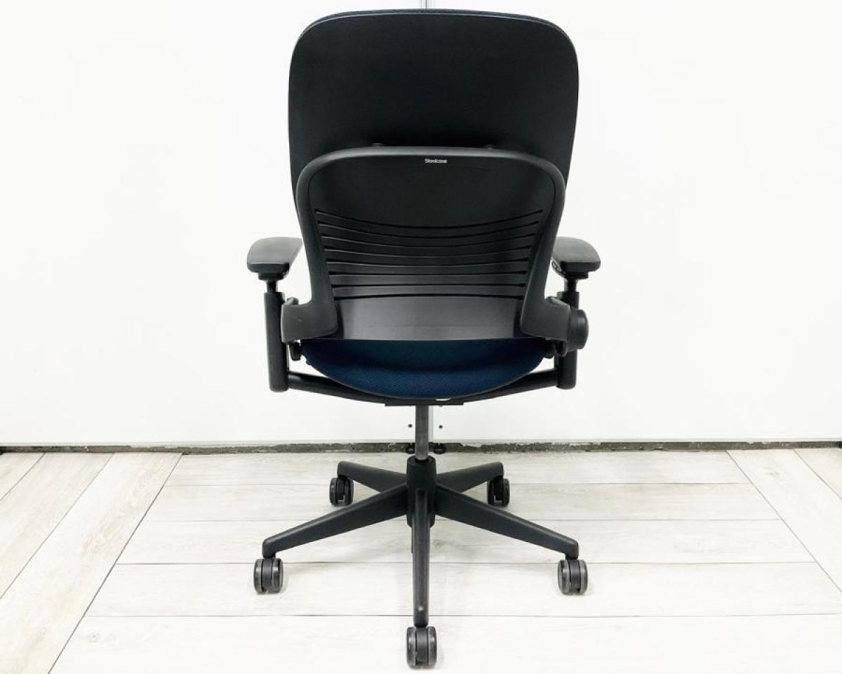 スチールケース製の可動肘付リープチェアのブルーカラーになります!!