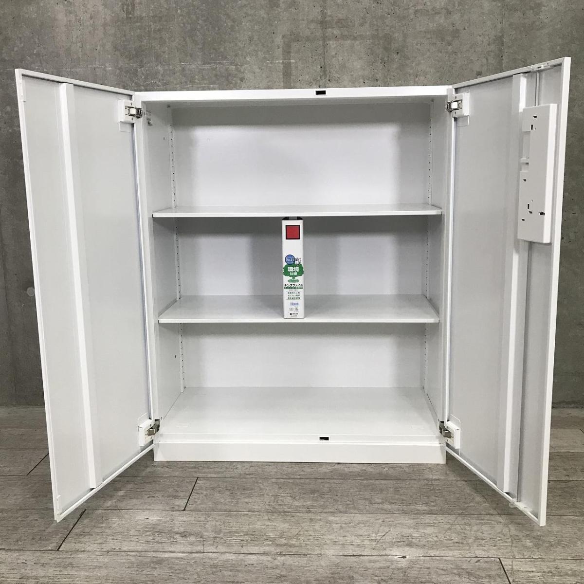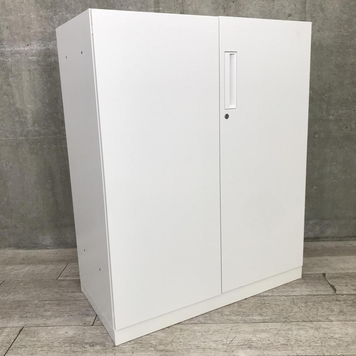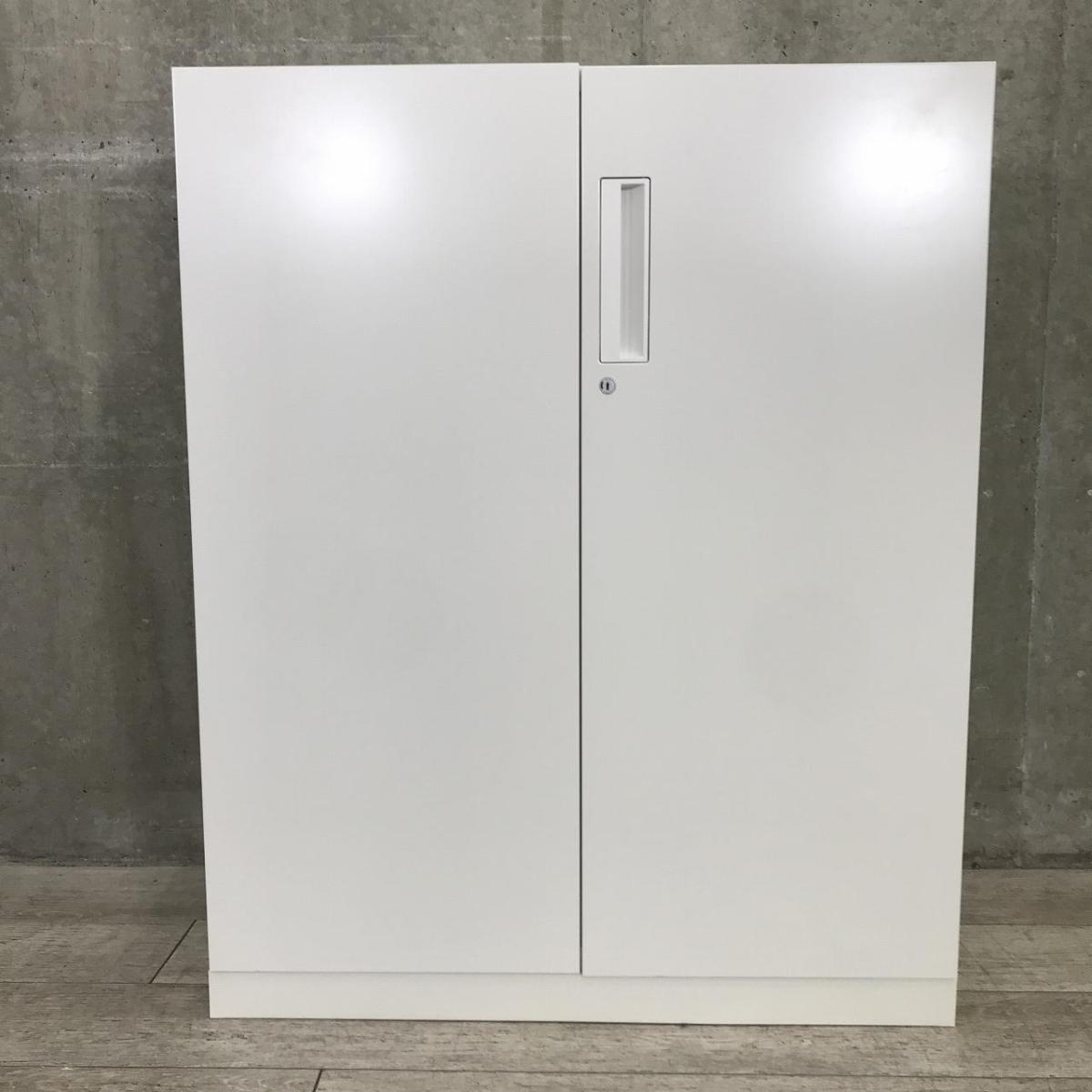 【収納物がひとめで分かる両開き戸タイプ!】■コクヨ(KOKUYO)製 エディア(EDIA)シリーズ 両開き書庫 ローキャビネット H1130㎜ ■天板・ベース付 ■ホワイト ■シリンダー錠