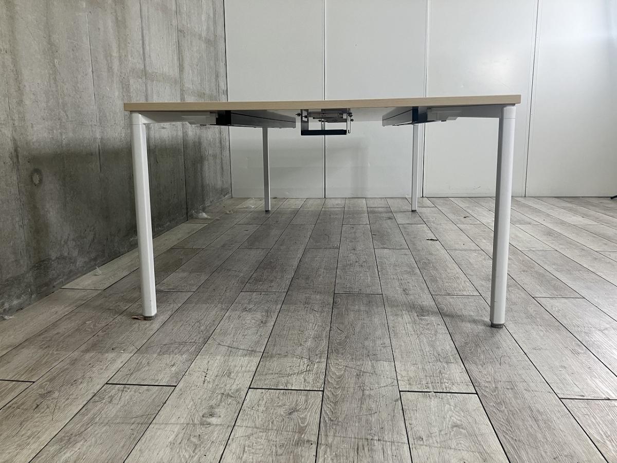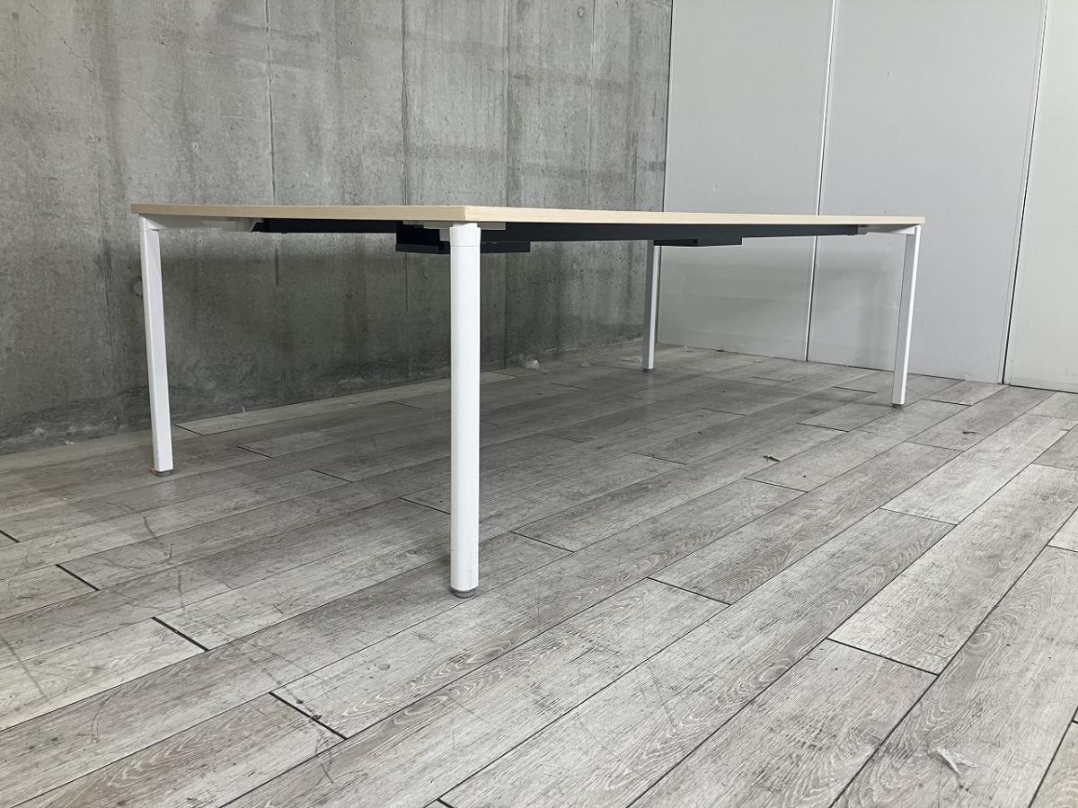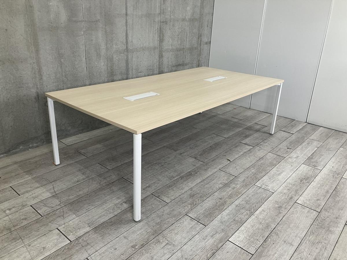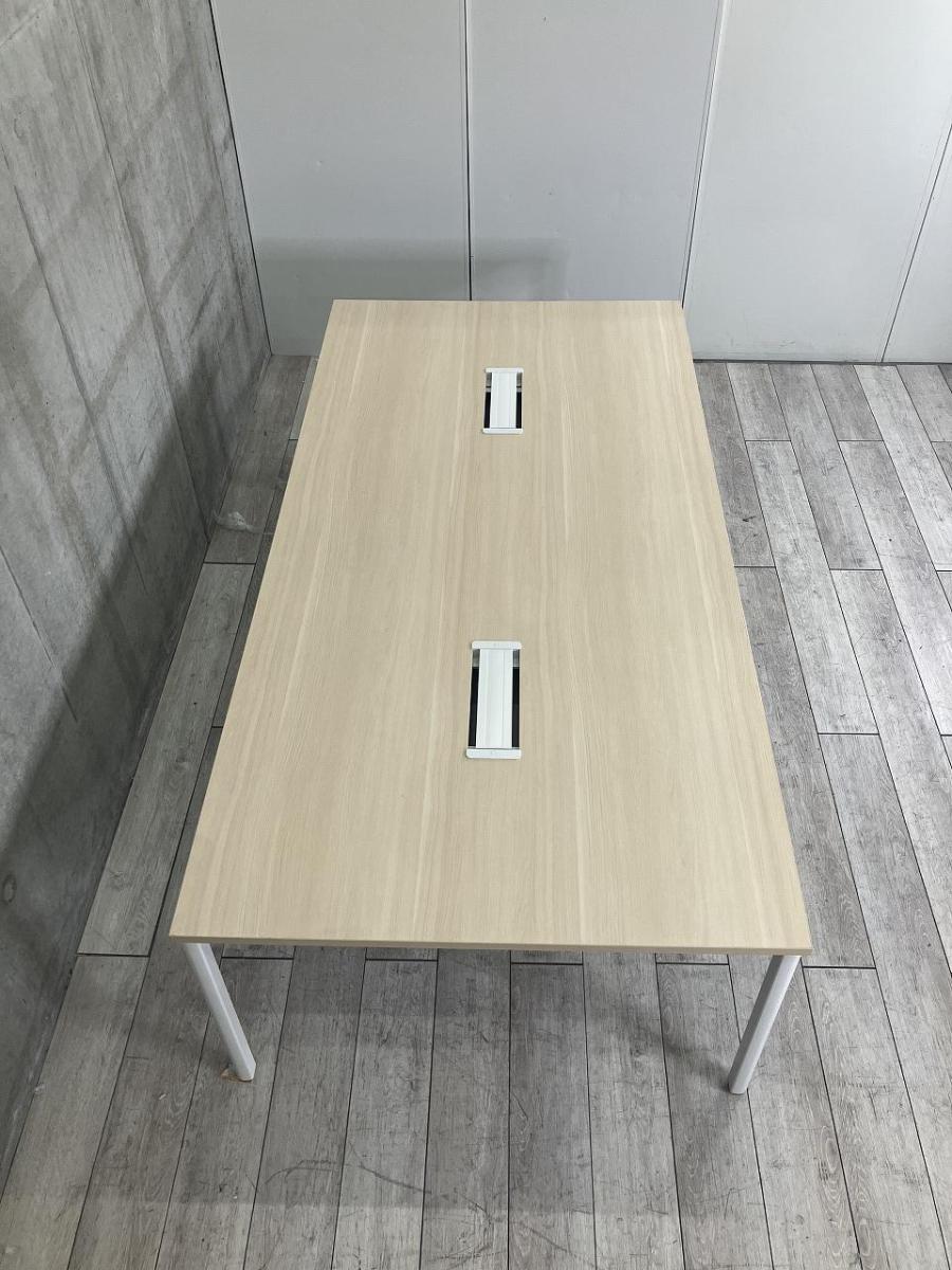 【4~6人使用に最適!配線ダクト付きのミーティングテーブル!】■ウチダ(UCHIDA)製 プレナシリーズ ミーティングテーブル 会議用 W2400×D1200㎜ ■配線ダクト(2か所) ■天板:ナチュラル/4本脚:ホワイト- 足立・葛飾店
