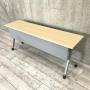 【天板跳ね上げ式でコンパクトに!キャスター付きで移動も楽々!】■オカムラ(okamura)製 フラプター(FLAPTOR)シリーズ サイドスタックテーブル ■木目ナチュラル ■幕板付き ■幅1800×奥行450㎜【2~3名様でのご利用におすすめ】- 名古屋本店