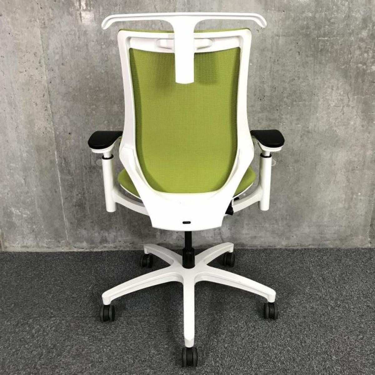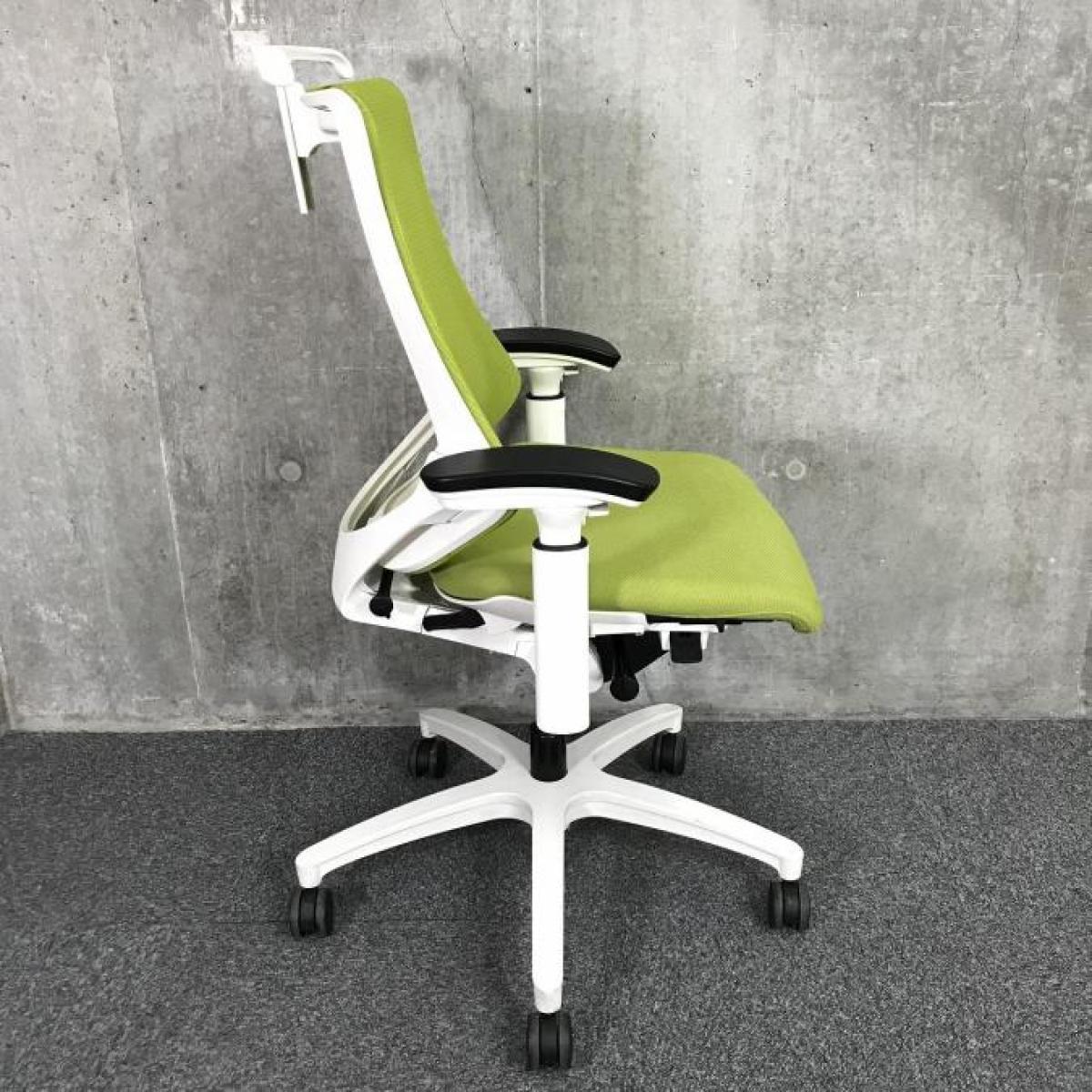 【フィット&フリー!姿勢の変化にフレキシブルに対応!スタイリッシュで座り心地も抜群の高機能チェア】■イトーキ(ITOKI) エフチェア 肘付き ハイバック ■メッシュバック ■可動肘 ■コートハンガー付き ■アイビーグリーン×ホワイトフレーム【IB】- 茨城南店