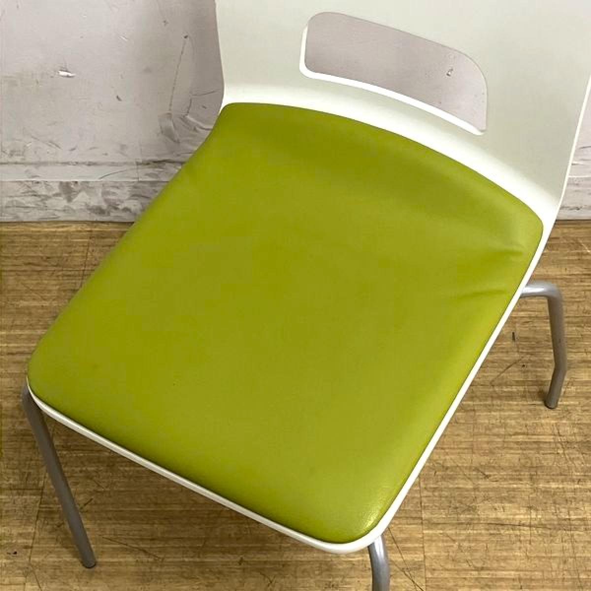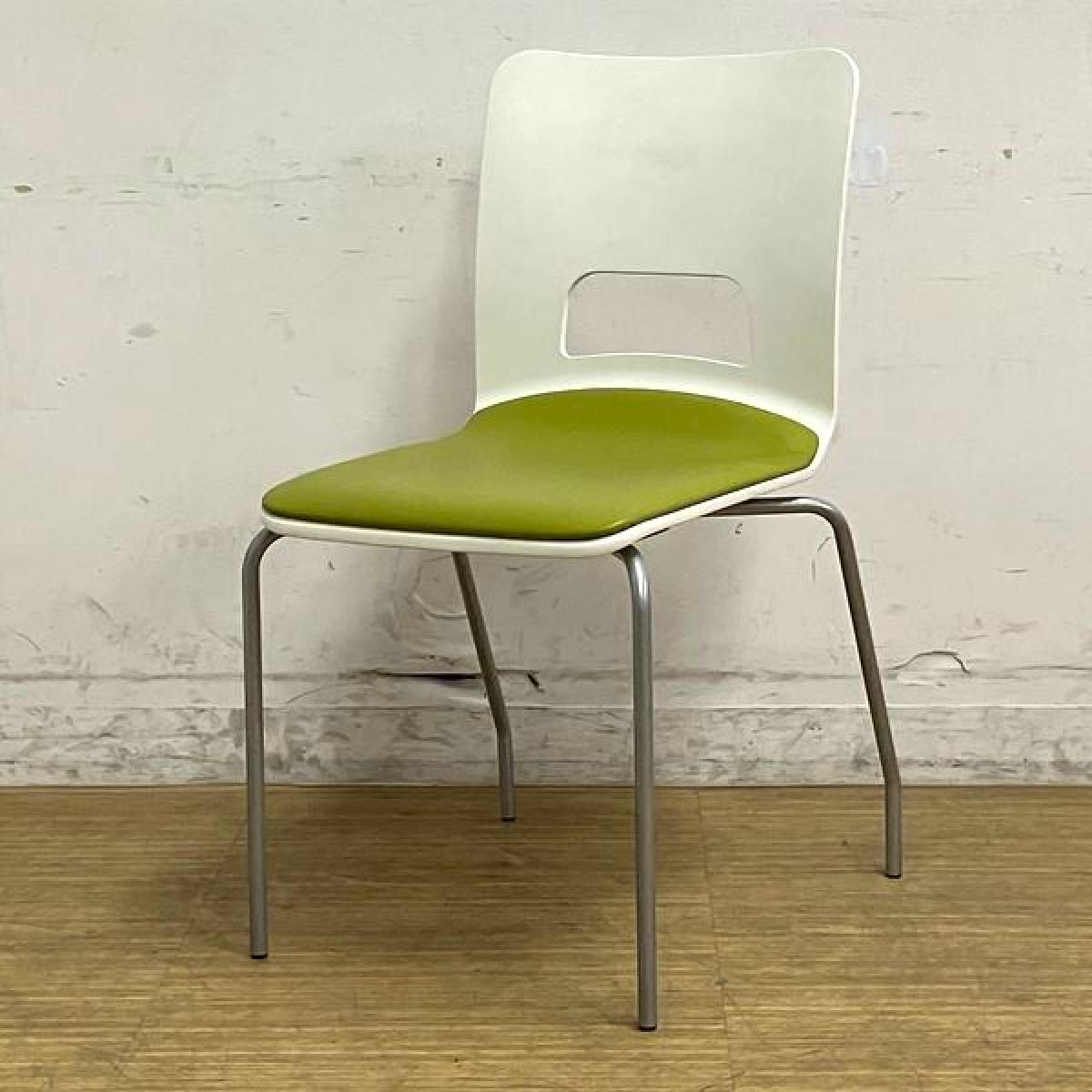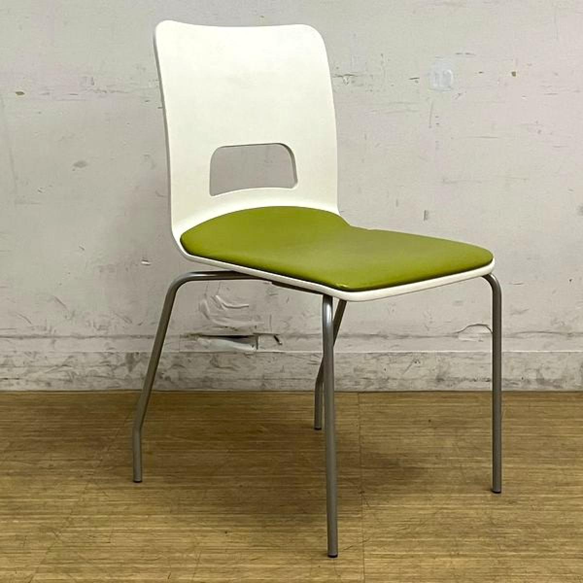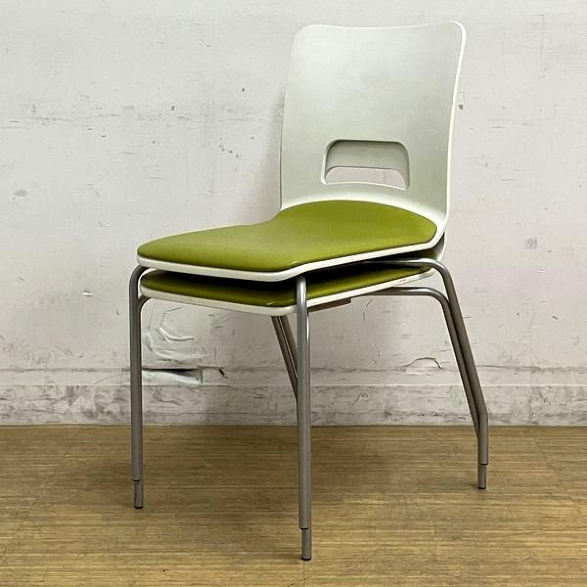 【在庫入替セール】イトーキ オルノチェア スタッキングチェア グリーン×ホワイトフレーム シルバー脚- 名古屋千種店