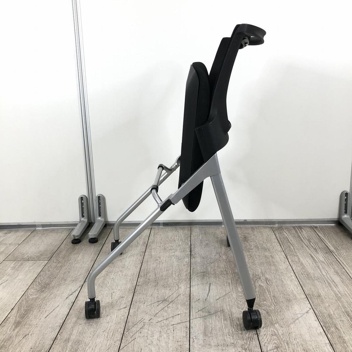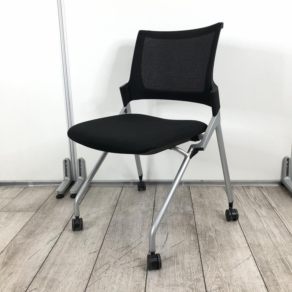 【省スペース収納&キャスター付きの万能チェア!】■イトーキ(ITOKI)製 モノンシリーズ スタッキングチェア ミーティングチェア キャスター付 ■背面メッシュ ■ブラック- 足立・葛飾店