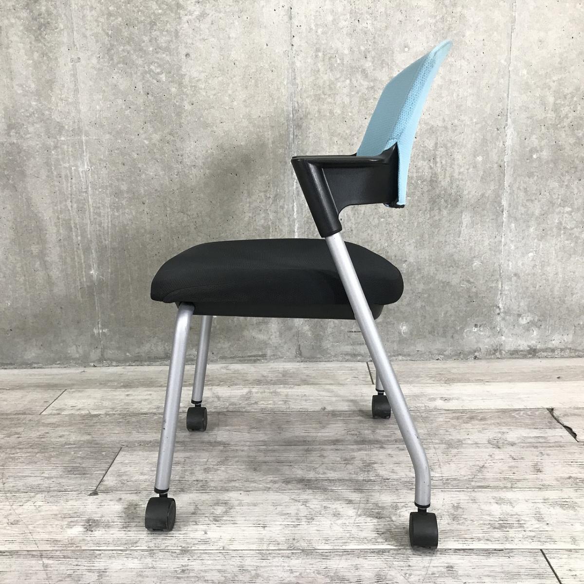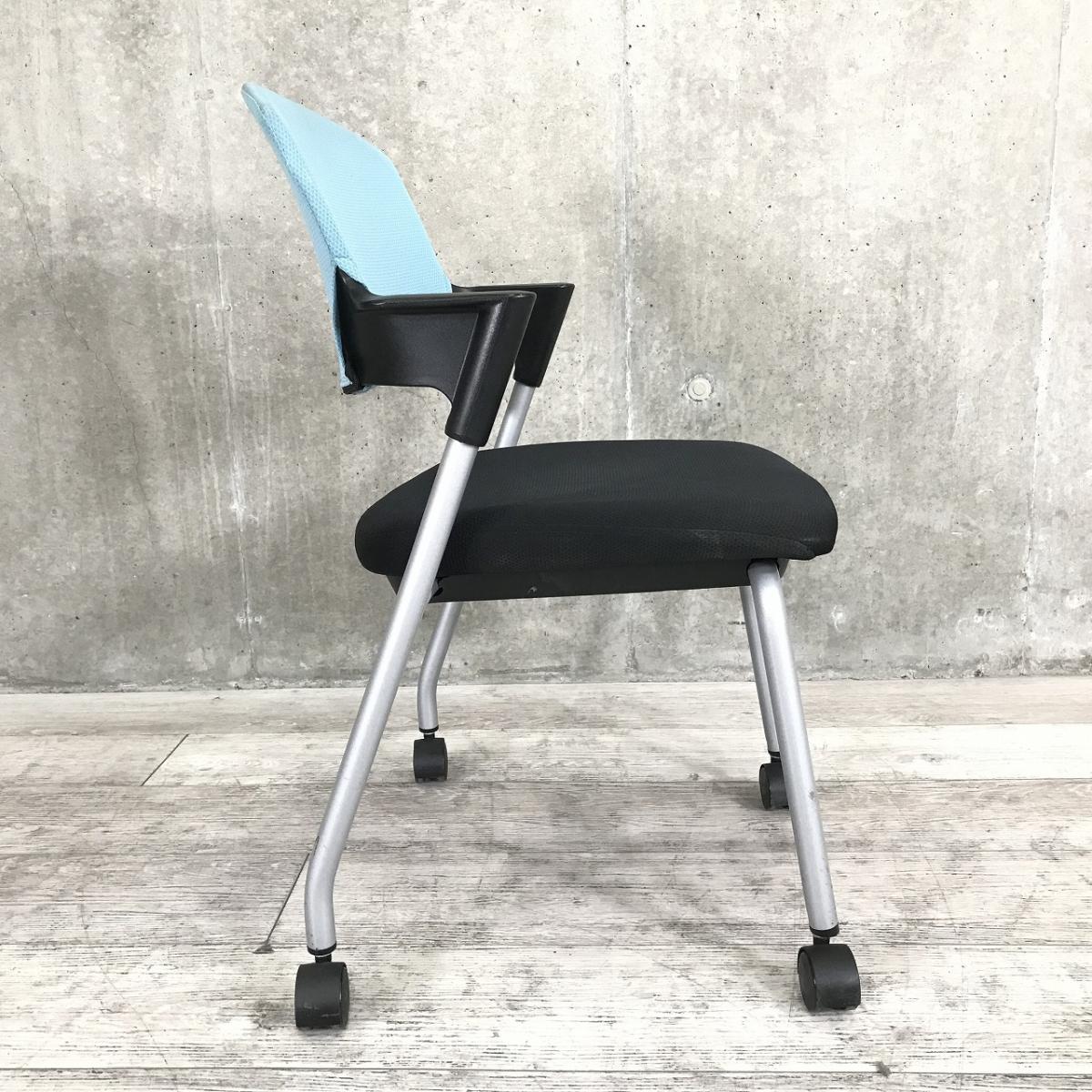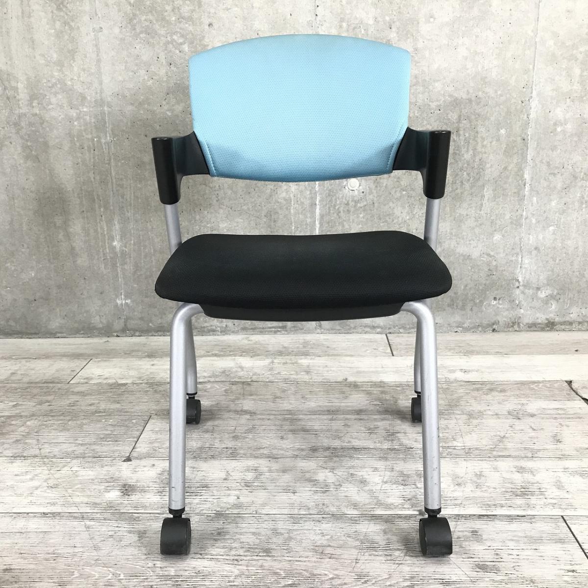【鮮やかなライトブルー!座面はブラックでオシャレなツートンカラー!】■コクヨ(KOKUYO)製 プロッティシリーズ スタッキングチェア ミーティングチェア キャスター付 ■色:背ライトブルー 座ブラック【AD】- 在庫数