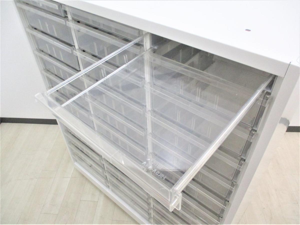 【書類・備品整理の必需品!】【珍しいクリトレが入荷!3列×浅型11段+深型5段】■イトーキ(ITOKI)製 シンラインシリーズ クリスタルトレー ローキャビネット ■3列×浅型11段+深型5段 ■天板・ベース付 ■色:ホワイト
