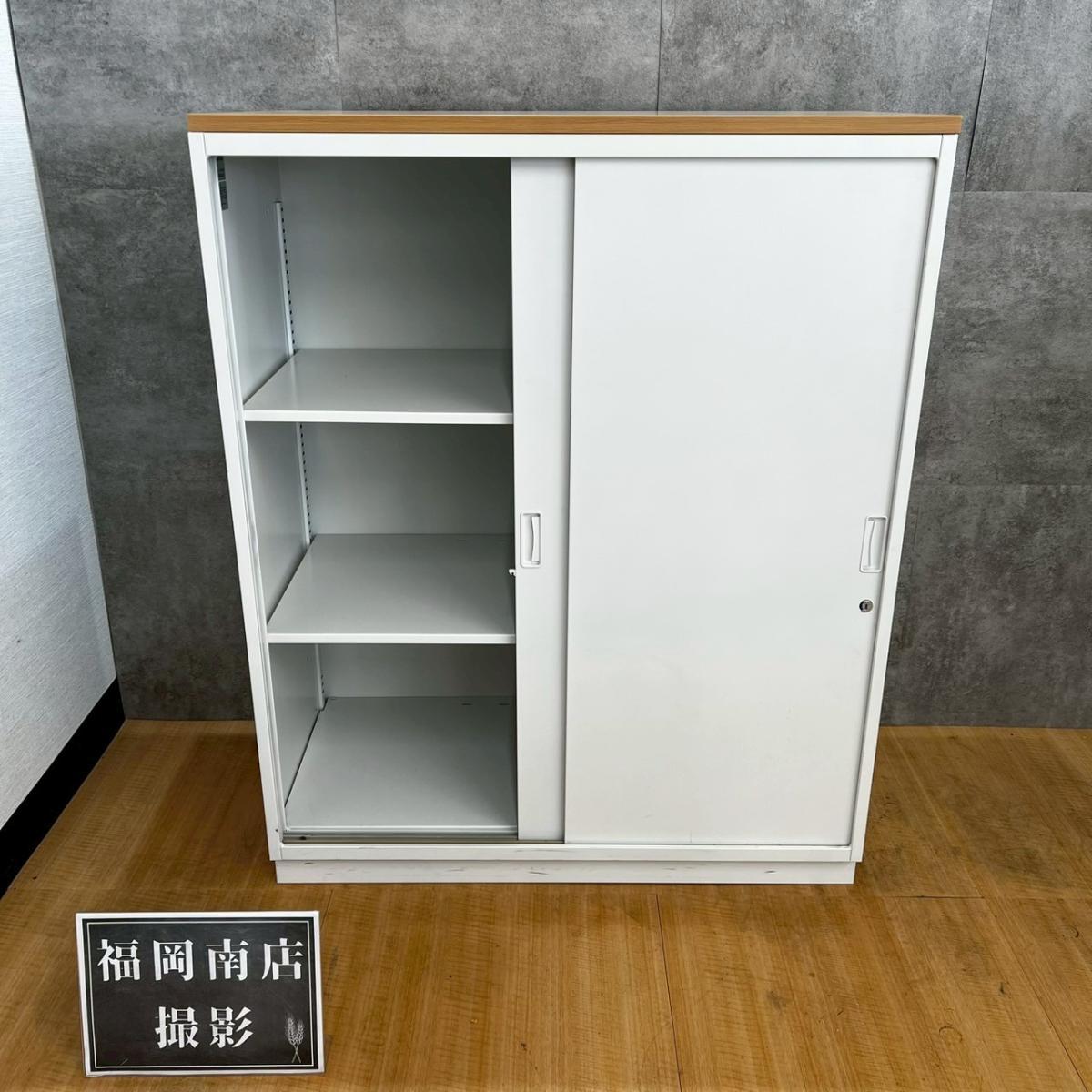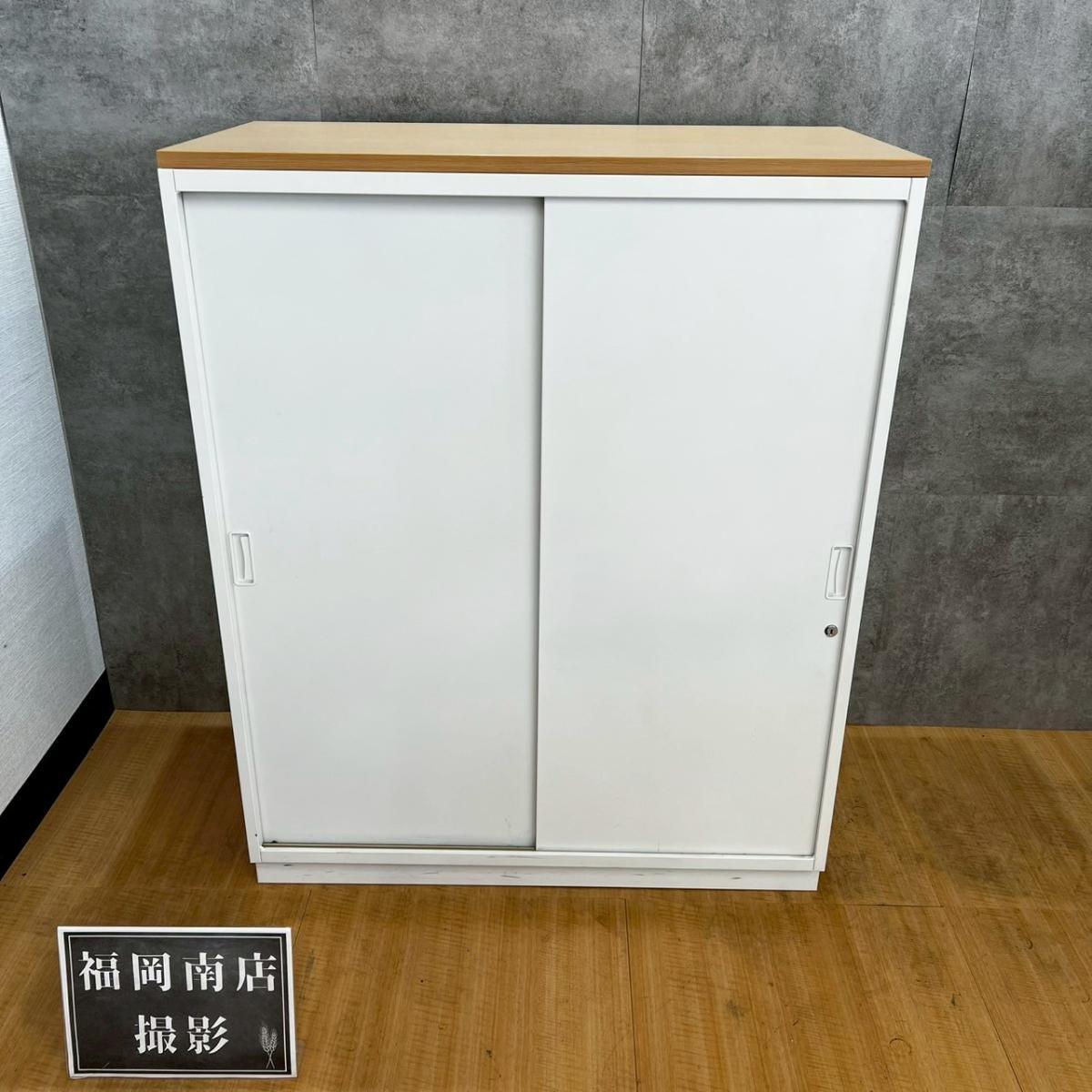 【イトーキ製の開閉スペースを確保した人気のキャビネット!】■3枚引き違いキャビネット ■イトーキ ■シンライン ■幅800mm×奥行き450mm×高さ1100mm 鍵付き書庫 オフィスバスターズ東大阪店
