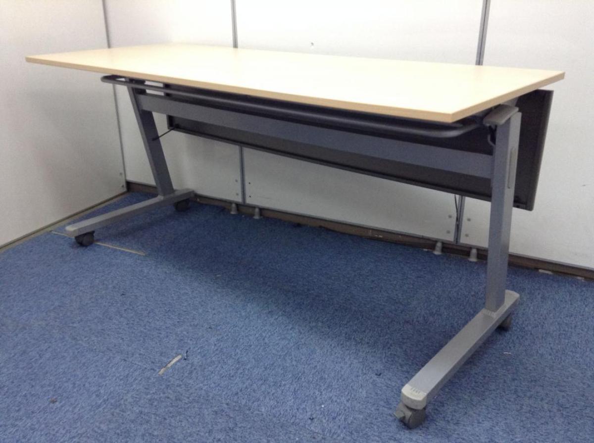 【折りたたみ収納可能!スタイリッシュなデザインのサイドフォールドテーブル!】■ウチダ(UCHIDA) SNシリーズ サイドスタックテーブル 折り畳み W1500㎜ ■幕板付き ■キャスター付 ■木目ナチュラル天板(リマインドメープル色)- 神戸・三宮店