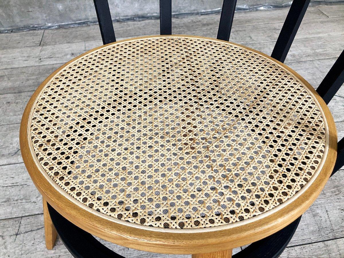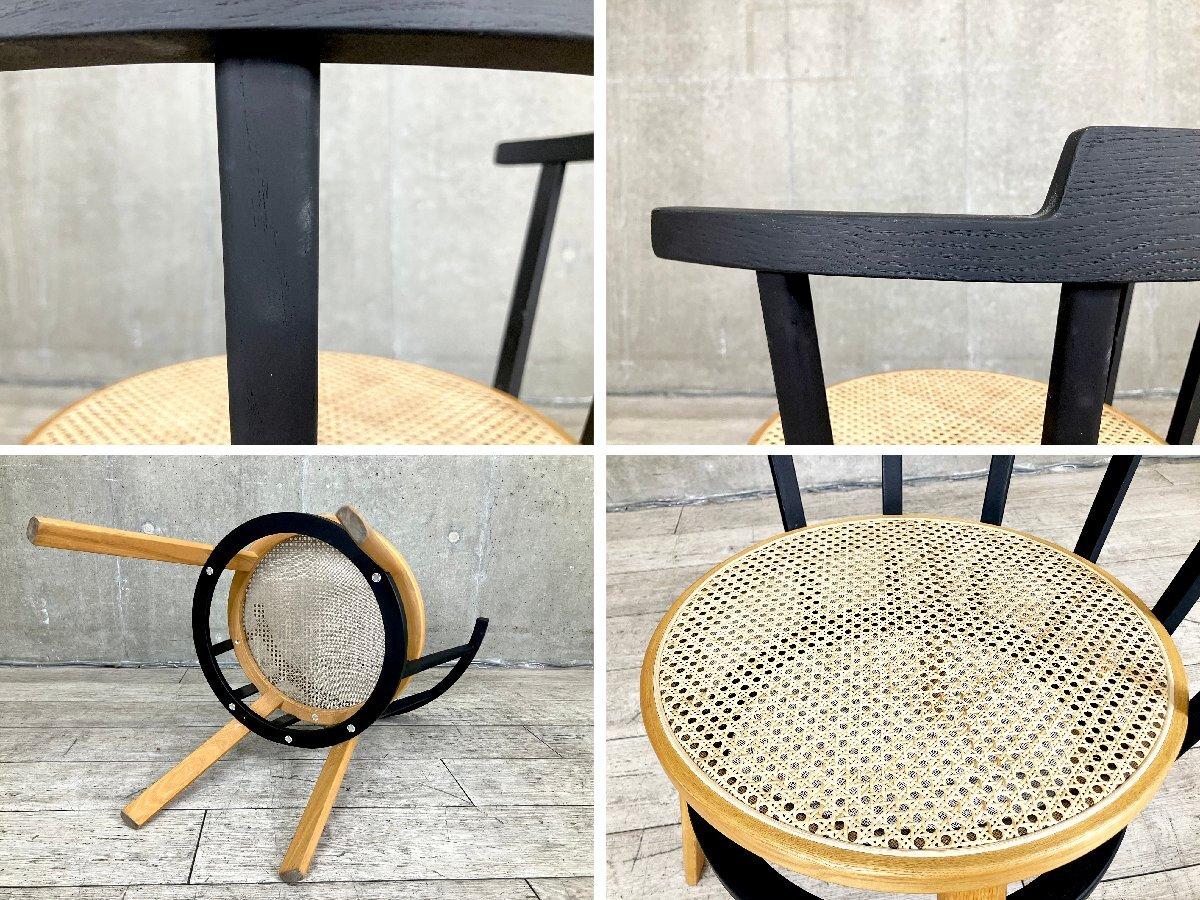 ウィンザーチェアという概念を持ちつつ、新しいスタッキングチェアと日本の曲木の技術が互いに融合した新しい椅子です。座面にはラタンのシートを張り込むことで、軽量感と懐かしさを感じせてくれます。