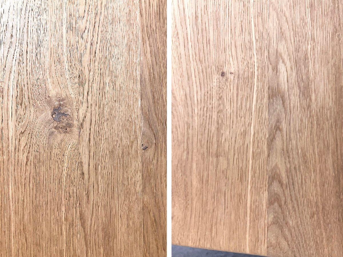 - あり黄ばみ・変色が広い範囲にうっすらある、または濃い黄ばみ・変色が一部ある。(例、天板、幕板、棚板、サイド部分、脚部等にある。)