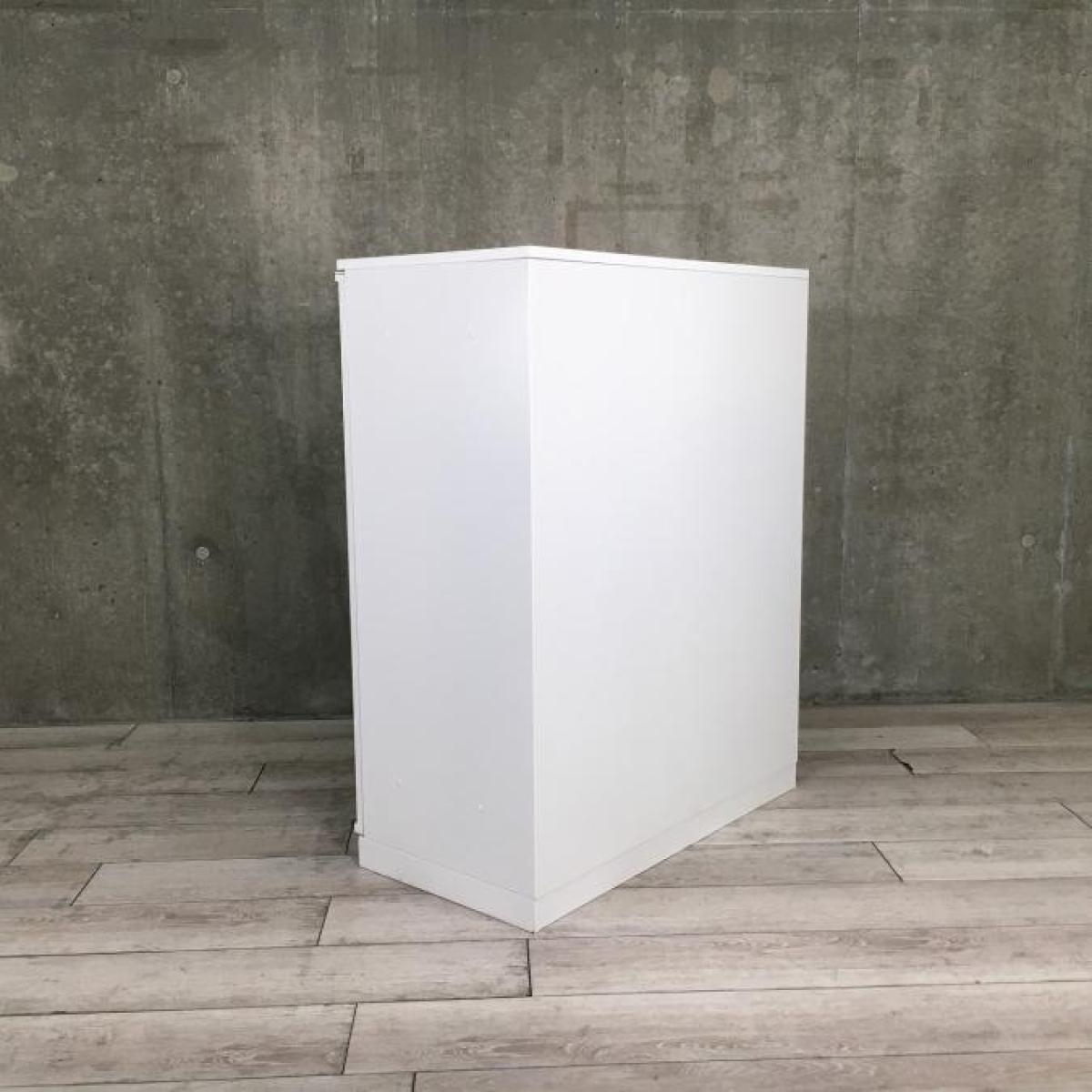 【オシャレなナチュラル天板付き!人気の観音開きタイプ・取っ手が大きく使い勝手のよい定番キャビネット!】■ウチダ(UCHIDA)製 HSシリーズ 両開きローキャビネット ■ホワイト ■木目調天板付 ■シリンダー錠