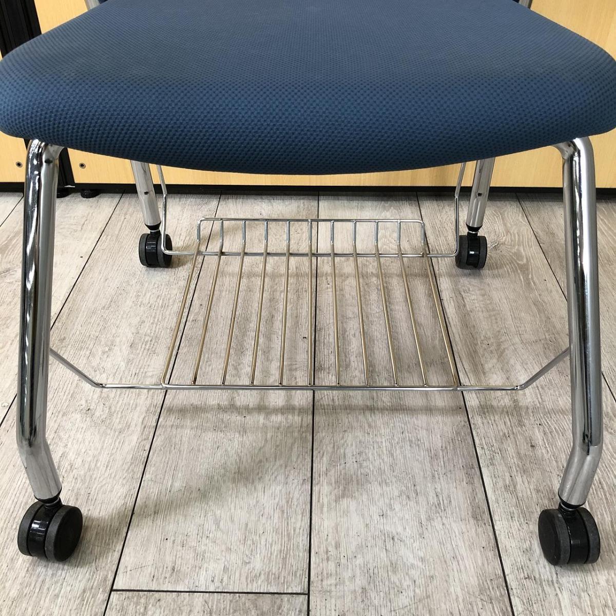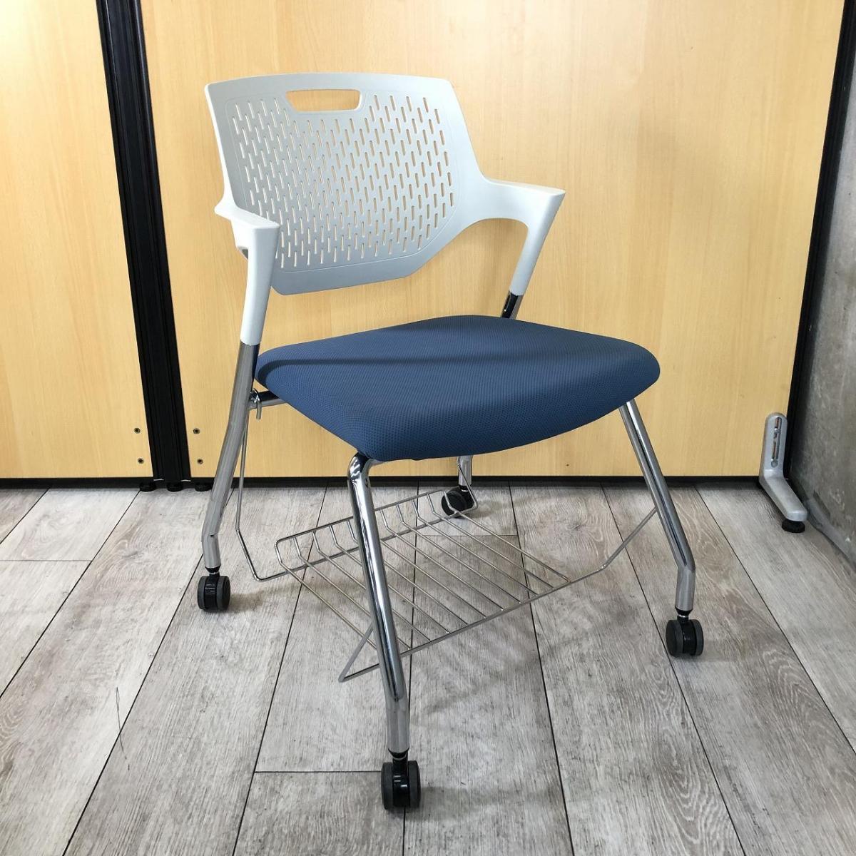 【在庫入替セール品】【荷物棚付で便利!アクティブなコミュニケーションをサポートするミーティングチェア!】■オカムラ(okamura)製 パート(Part)シリーズ ミーティングチェア ネスティングチェア 肘付 キャスター付 ■背面樹脂メッシュ:ホワイト/座面:ブルー【弊社使用欄:A00999283】【SN】- 在庫数