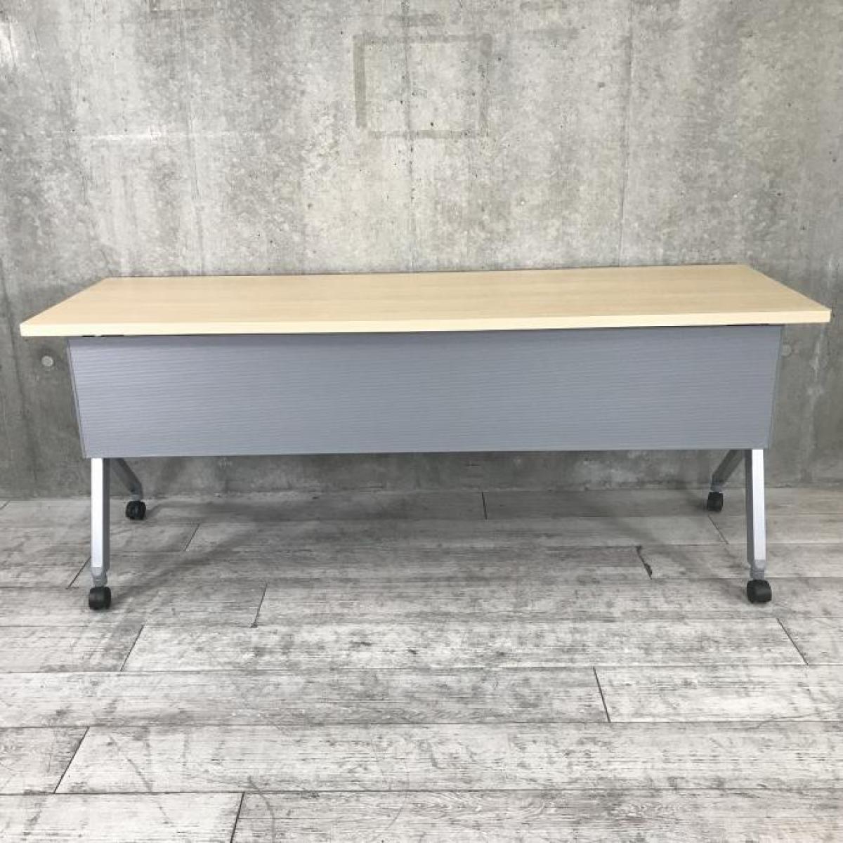 【コンパクトに収納可能なサイドスタックテーブル!キャスター付き】■オカムラ(okamura) フラプター(FLAPTOR) サイドスタックテーブル 会議用テーブル ■W1800×D600㎜ ■天板:木目ナチュラル ■幕板付き/キャスター付【IB】- 茨城南店