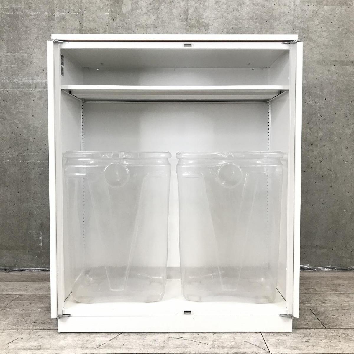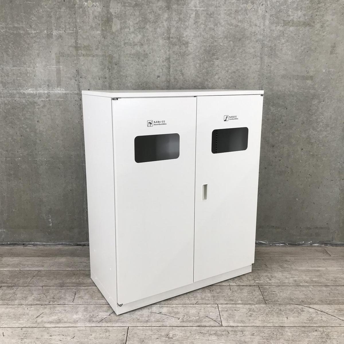 【あると便利な逸品!】【リフレッシュスペースに設置もオススメ!】■イトーキ(ITOKI)製 シンラインシリーズ 両開きリサイクルユニット(分別ダストボックス) ■ペール×2付 ■ホワイト ■天板/ベース付き【ぱっと見ではゴミ箱には見えないデザイン!】【K11】- 大阪・堺店