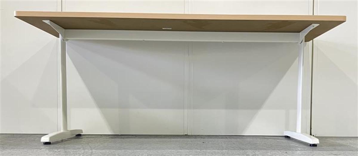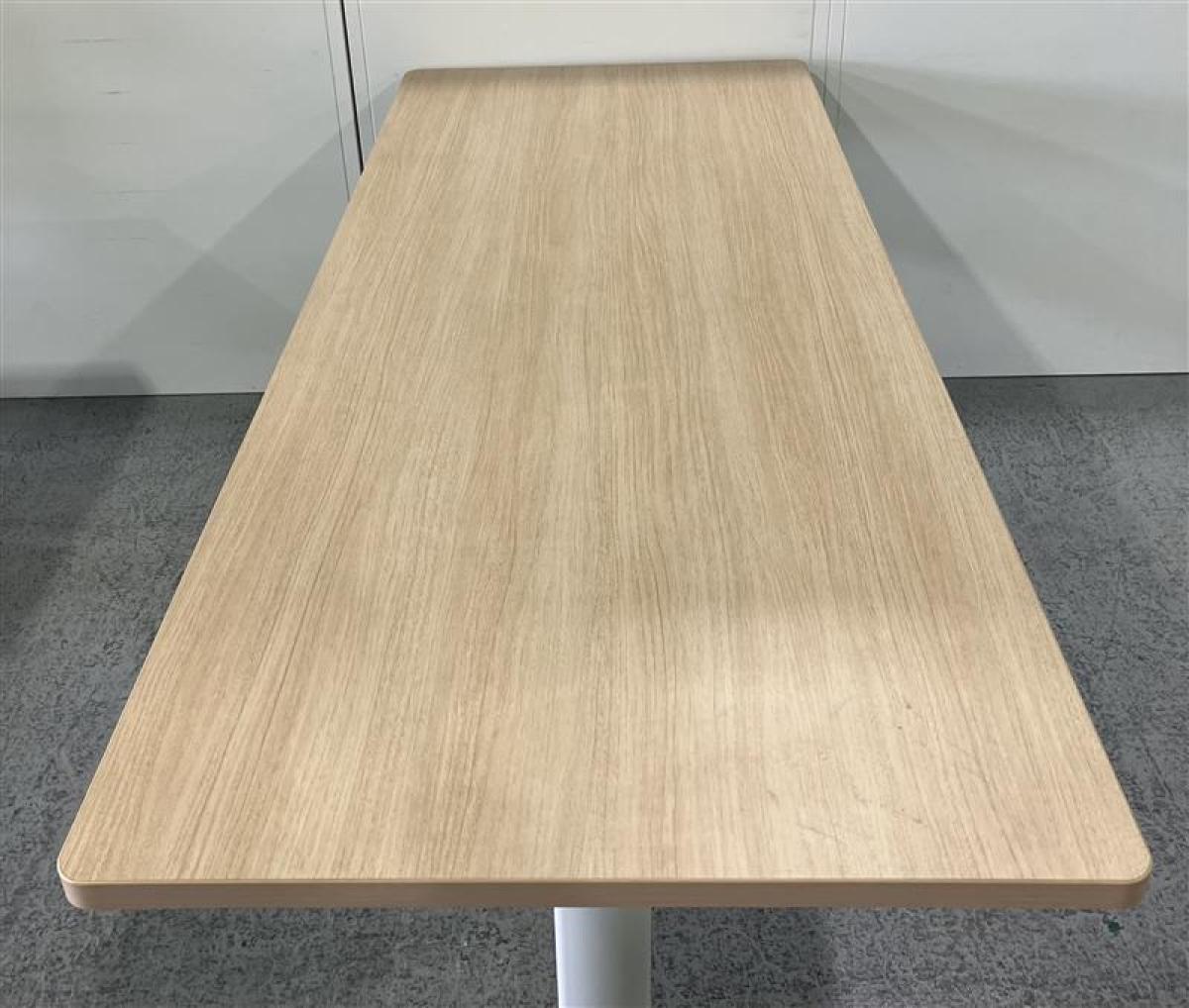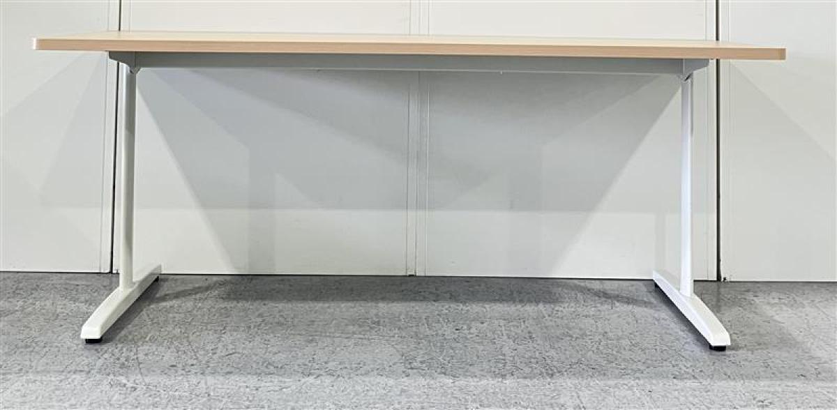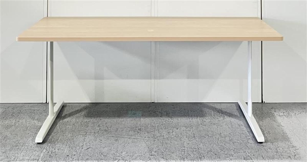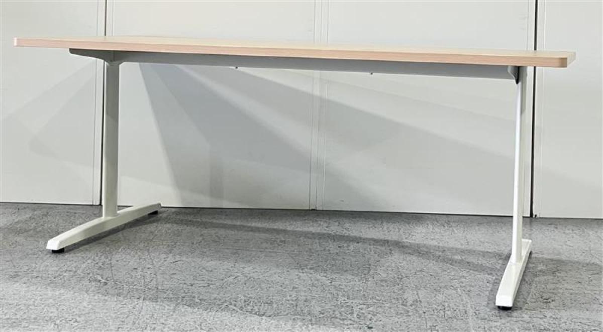 【オフィスを明るく魅せる木目調カラー!4人~6人用の会議・打合せ用のテーブルとして最適!】■オカムラ(okamura)製 8177シリーズ ミーティングテーブル ■W1800xD750xH720 ■天板:ナチュラル木目調(ネオウッドライト) T字脚:ホワイト- 大阪心斎橋店