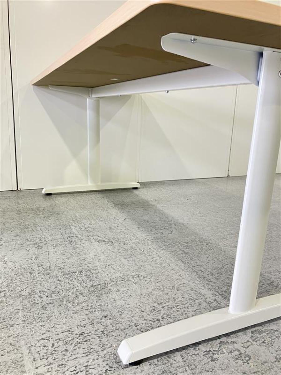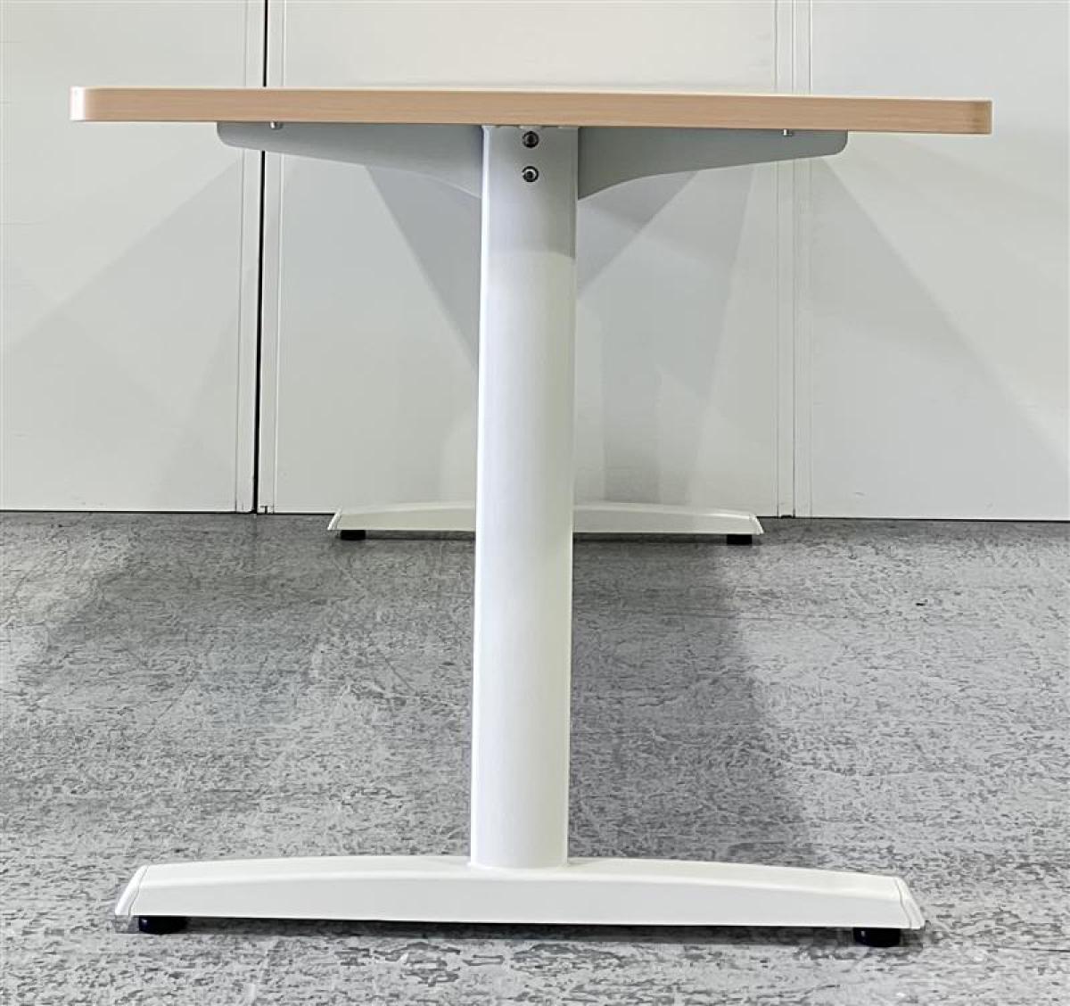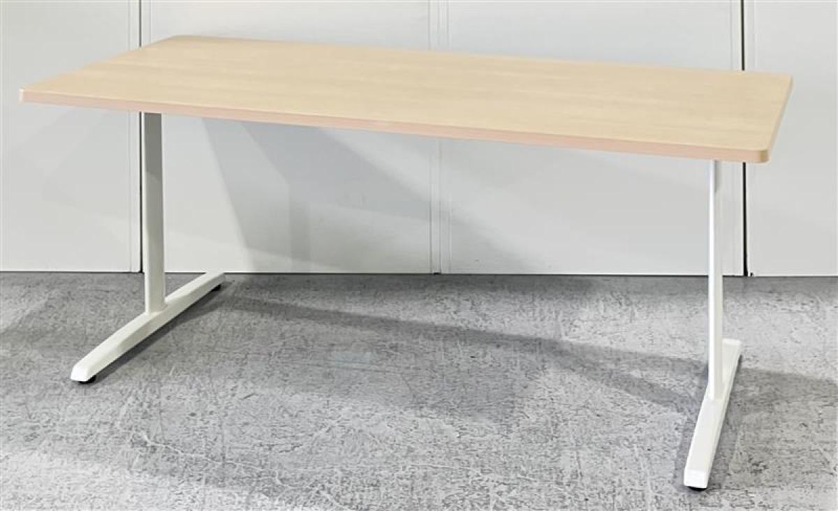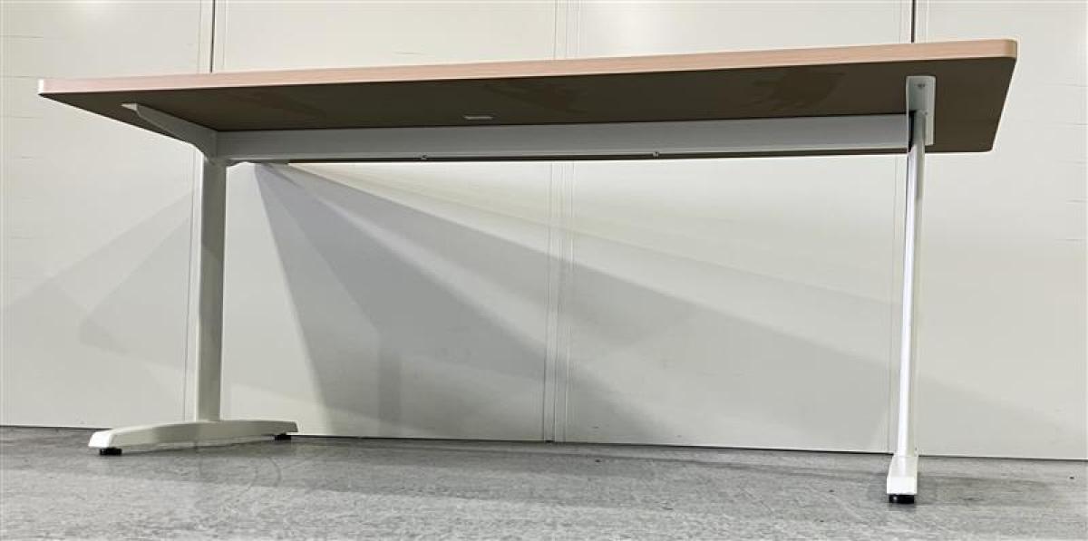 【オフィスを明るく魅せる木目調カラー!4人~6人用の会議・打合せ用のテーブルとして最適!】■オカムラ(okamura)製 8177シリーズ ミーティングテーブル ■W1800xD750xH720 ■天板:ナチュラル木目調(ネオウッドライト) T字脚:ホワイト- 大阪心斎橋店