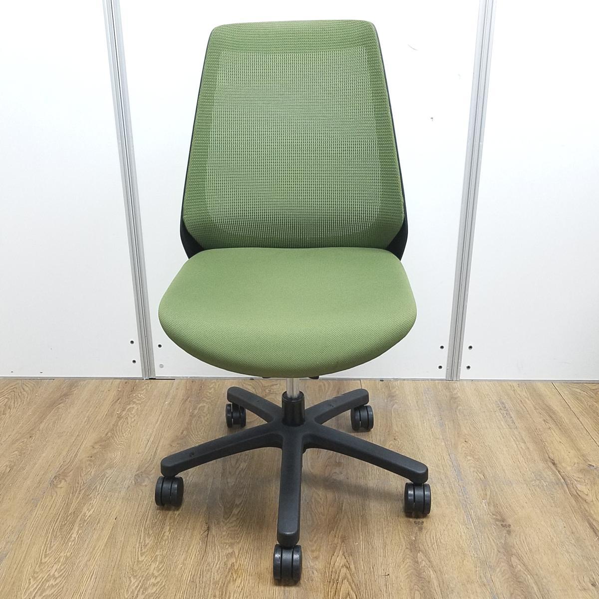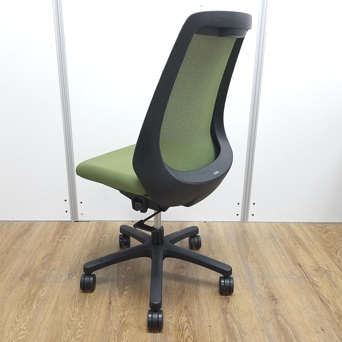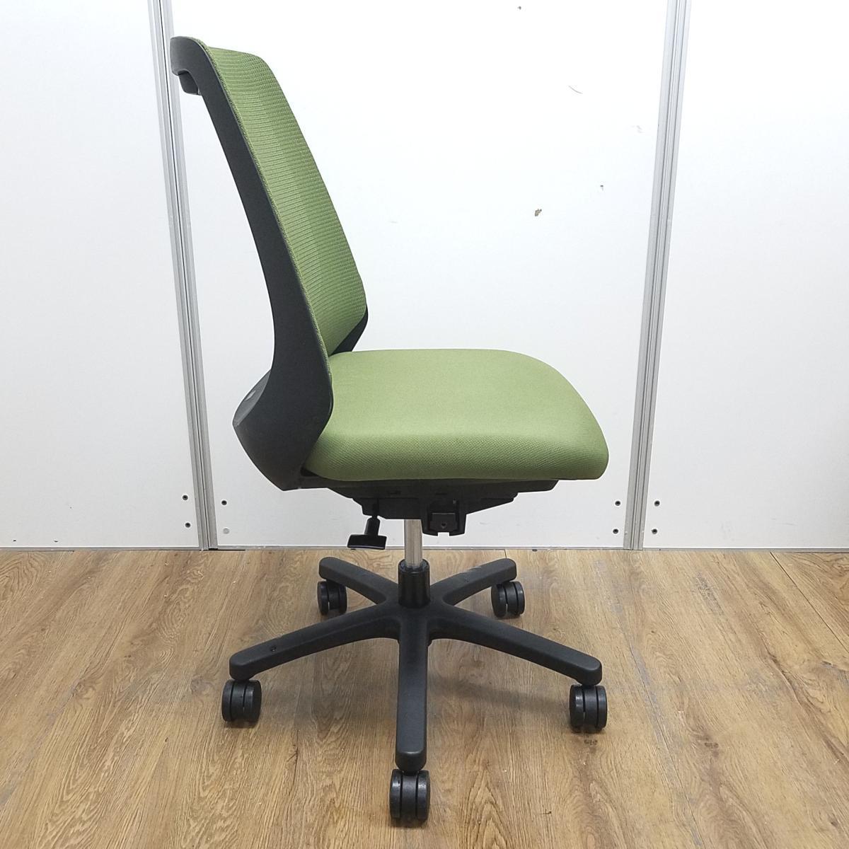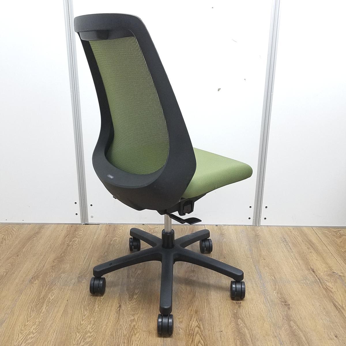 【在庫入れ替えセール】【理想的な作業姿勢で快適な座り心地!デスクに納まりの良いコンパクト設計!】■イトーキ(ITOKI)製 ノナチェア (nona) 肘無し ハイバック ■グリーン × ブラックシェル ■背面メッシュ