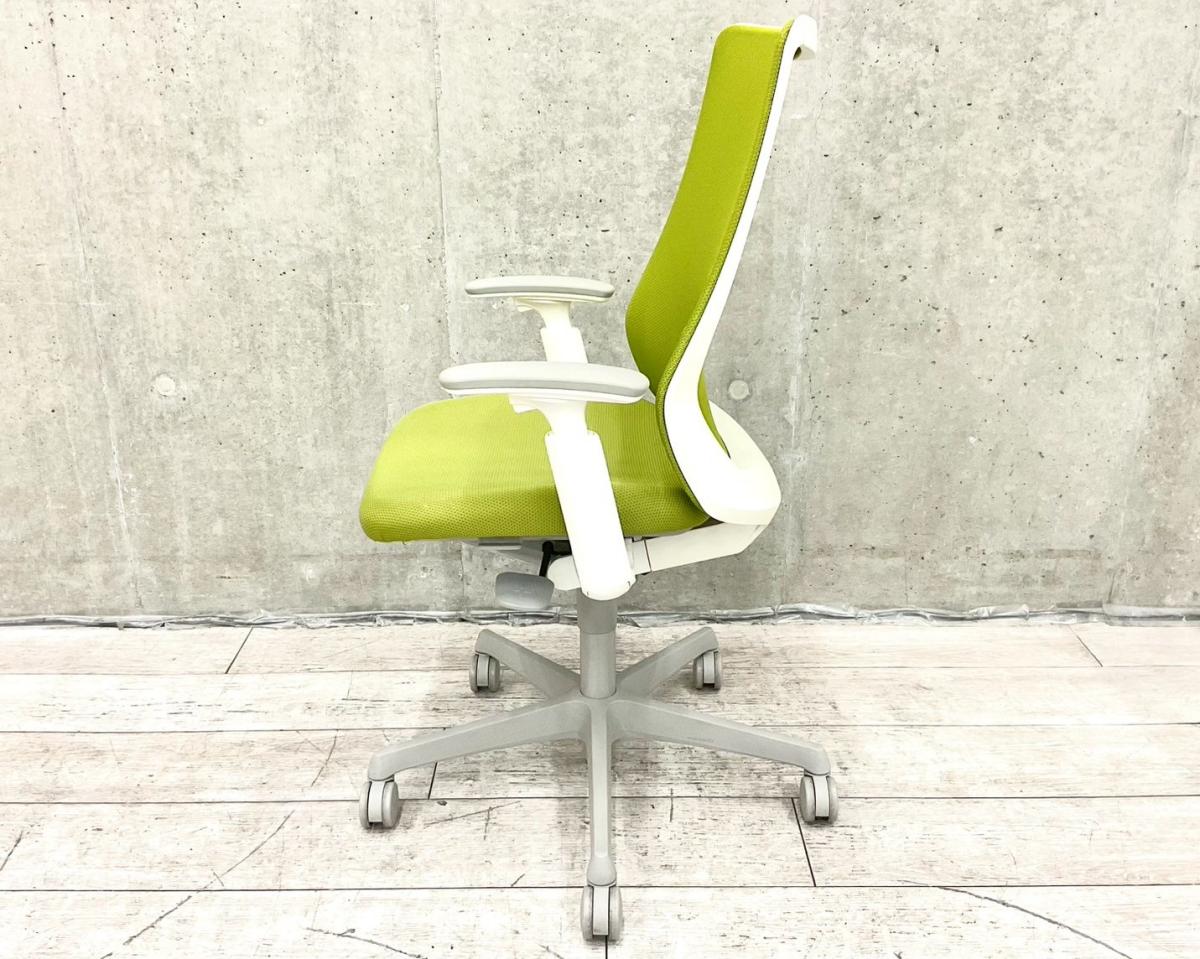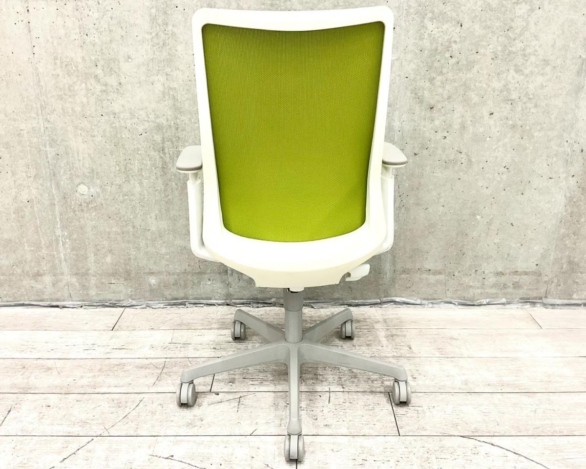 【在庫入替セール品】【背中を立体的に包み込む!シルフィの座り心地を低コストで再現!】■オカムラ(okamura)製 フルーエントチェア 肘付ハイバック 背面メッシュ ■可動肘付き ■グリーン【弊社使用欄:A01021117 K】サーキュラーバリューCO2削減量の算出について