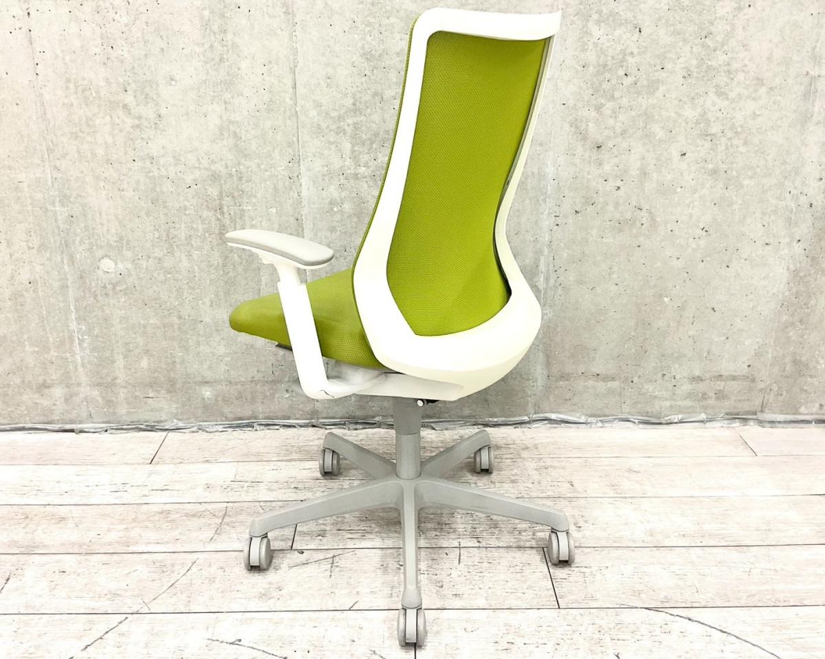 【在庫入替セール品】【背中を立体的に包み込む!シルフィの座り心地を低コストで再現!】■オカムラ(okamura)製 フルーエントチェア 肘付ハイバック 背面メッシュ ■可動肘付き ■グリーン