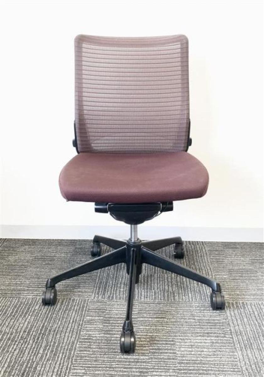 オカムラ製の肘無しミドルバックチェアのコーラルです!!