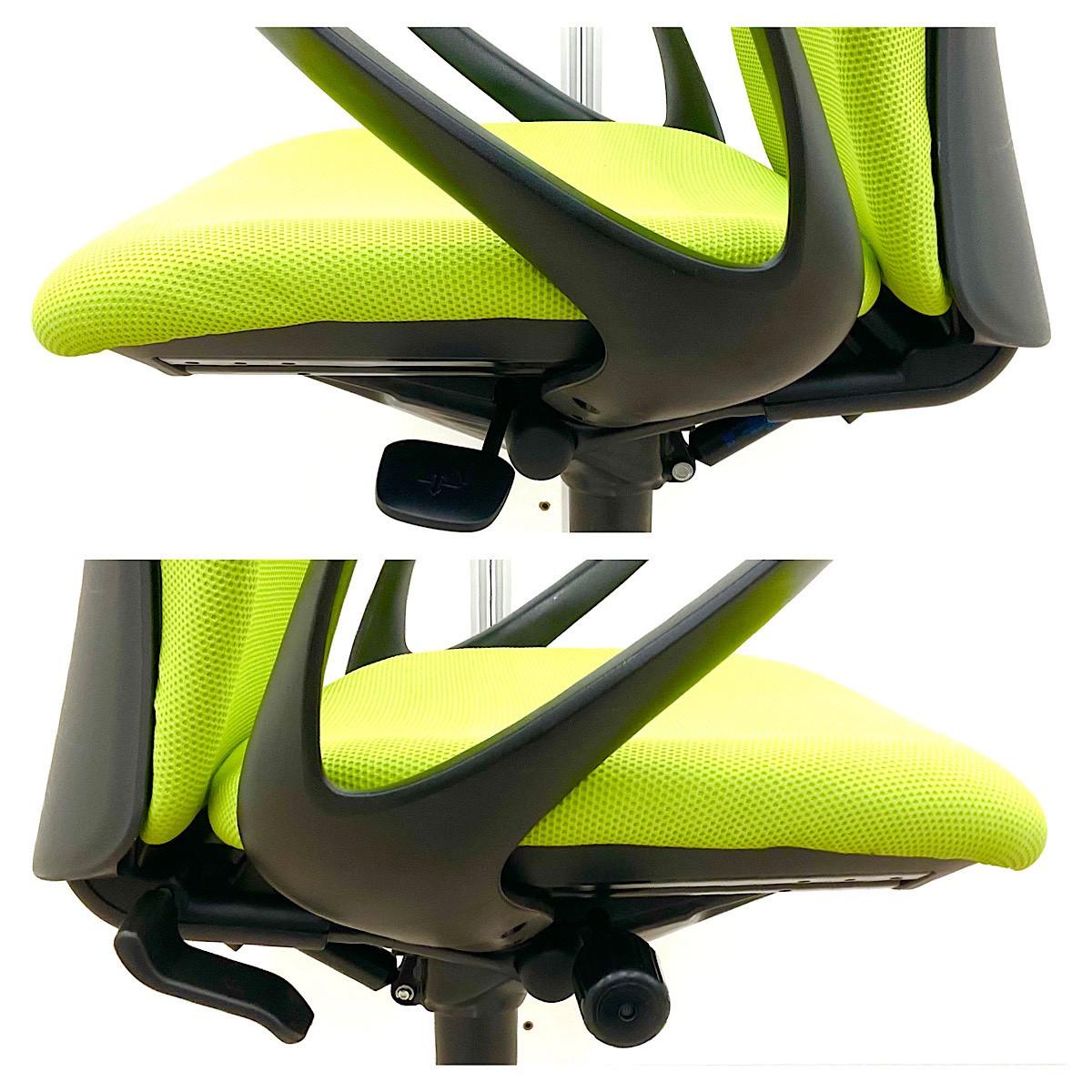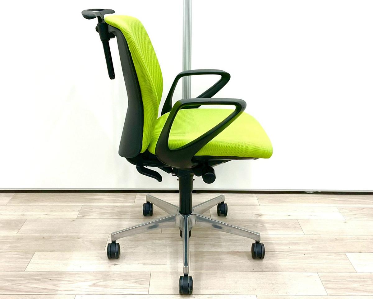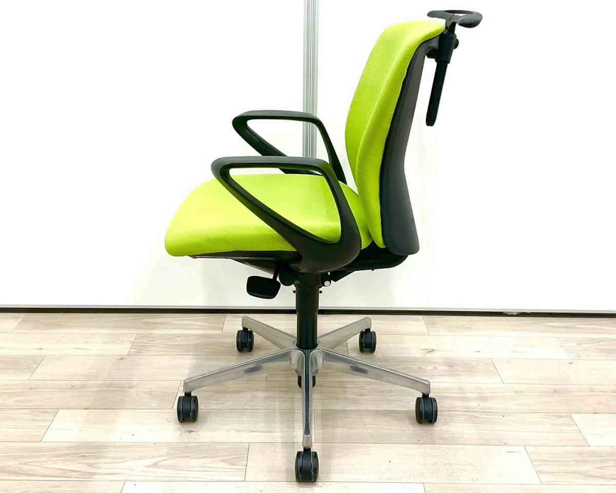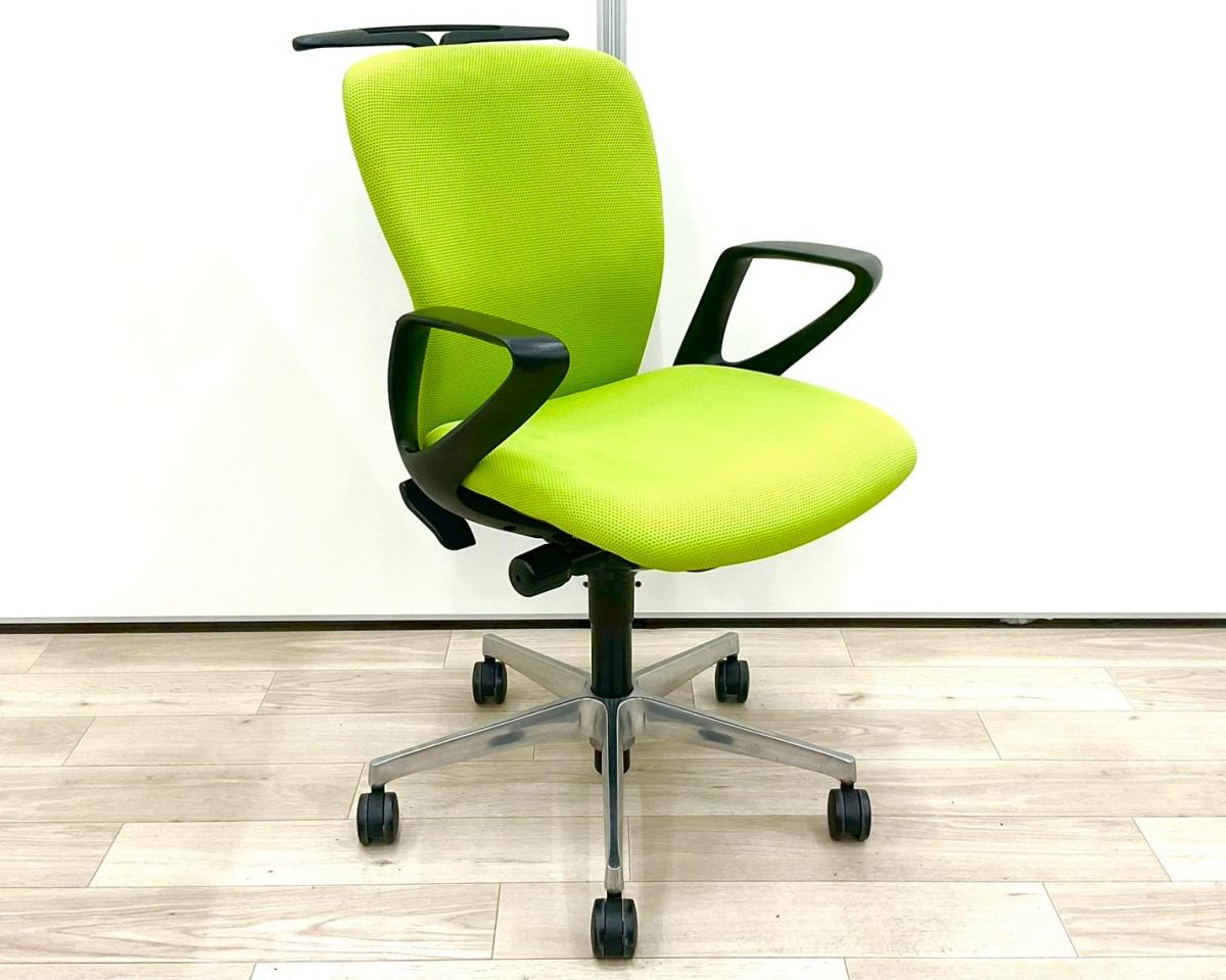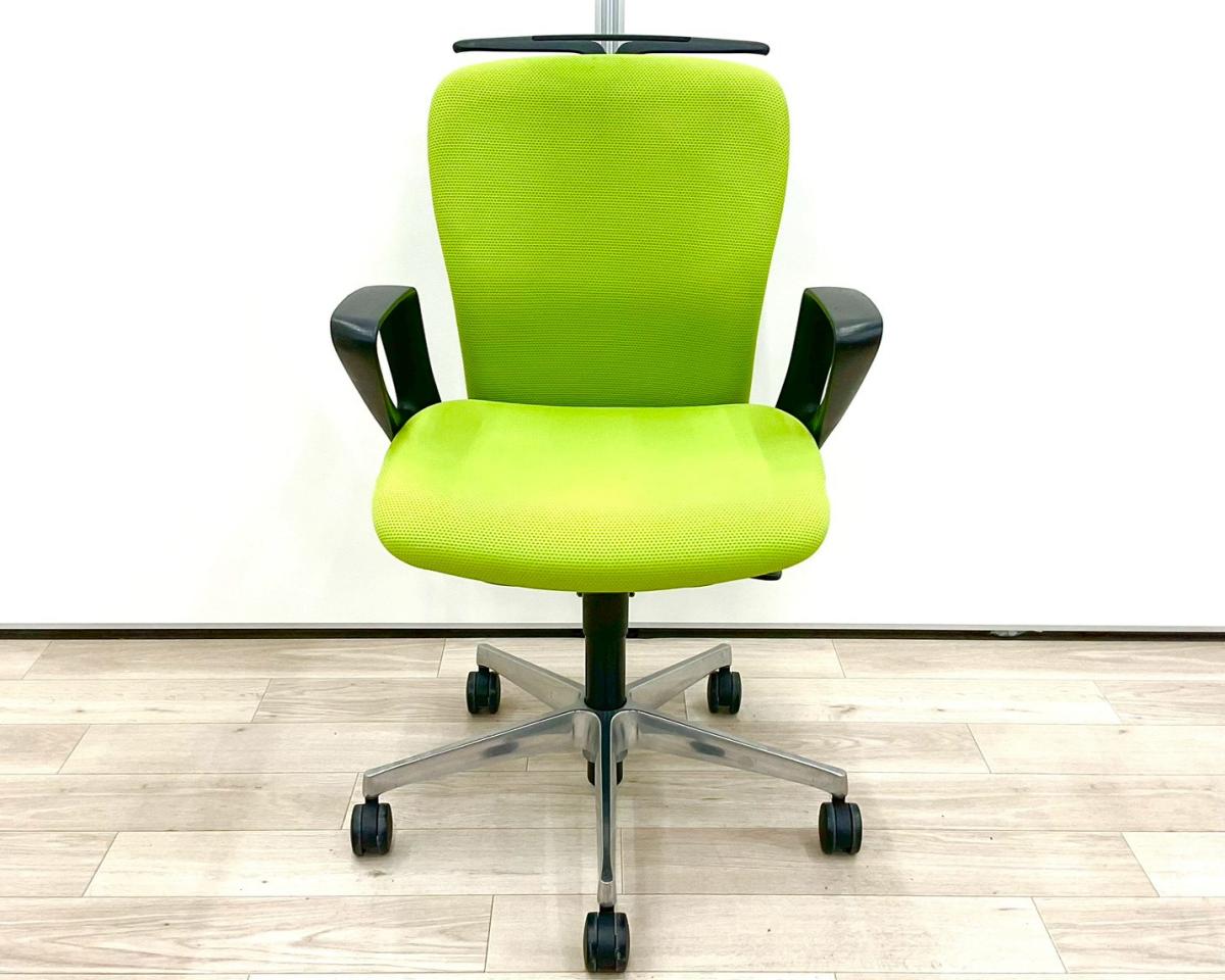 【シンプルなデザインと厚みのあるクッションが大人気!機能充実のワーキングチェア!】■オカムラ(okamura)製 スラート(sulato)チェア 肘付 ローバック クッションタイプ ■可動肘・ハンガー付き ■ライムグリーン×ホワイトシェル【弊社使用欄:A01053720】【ID】