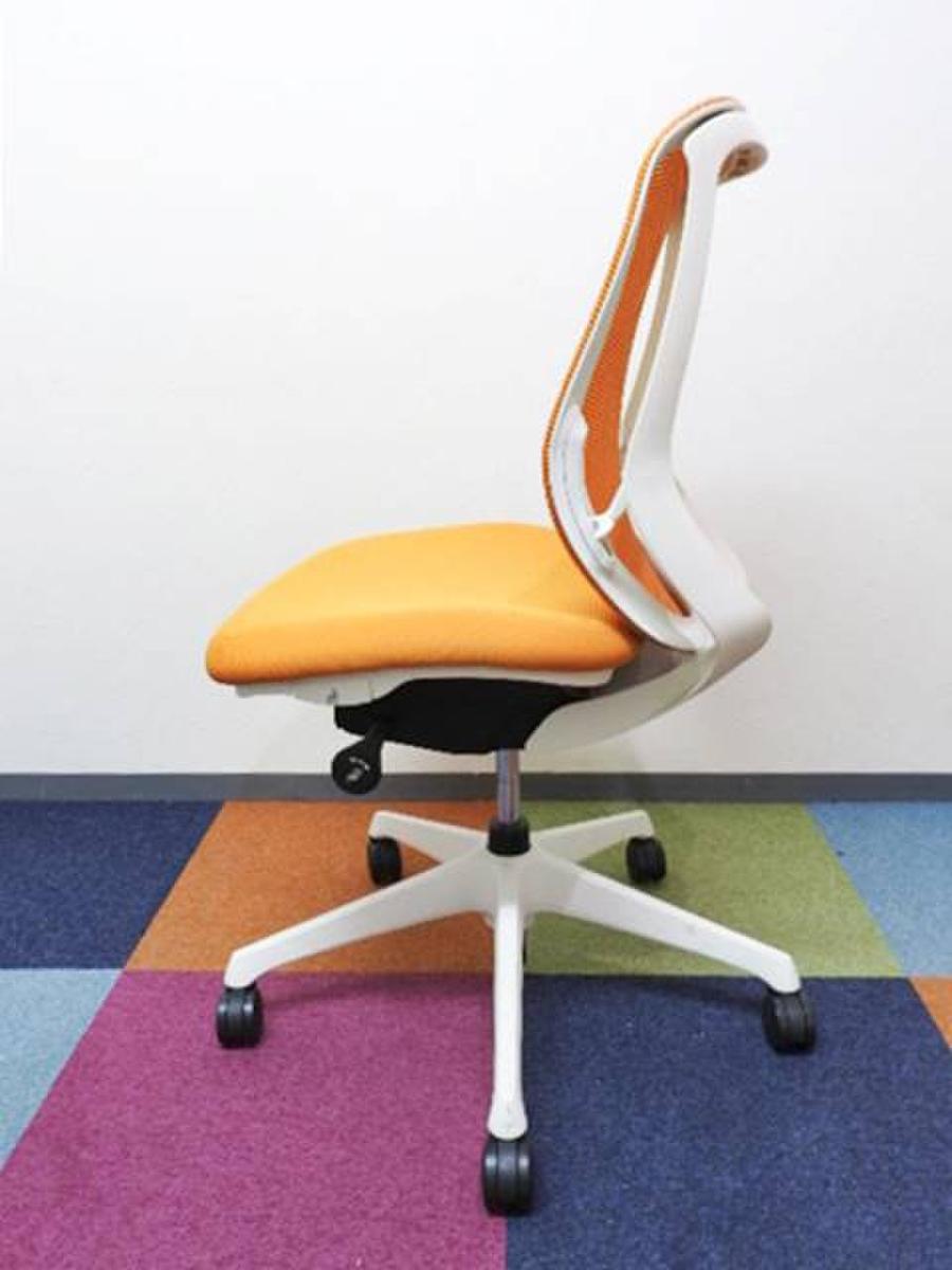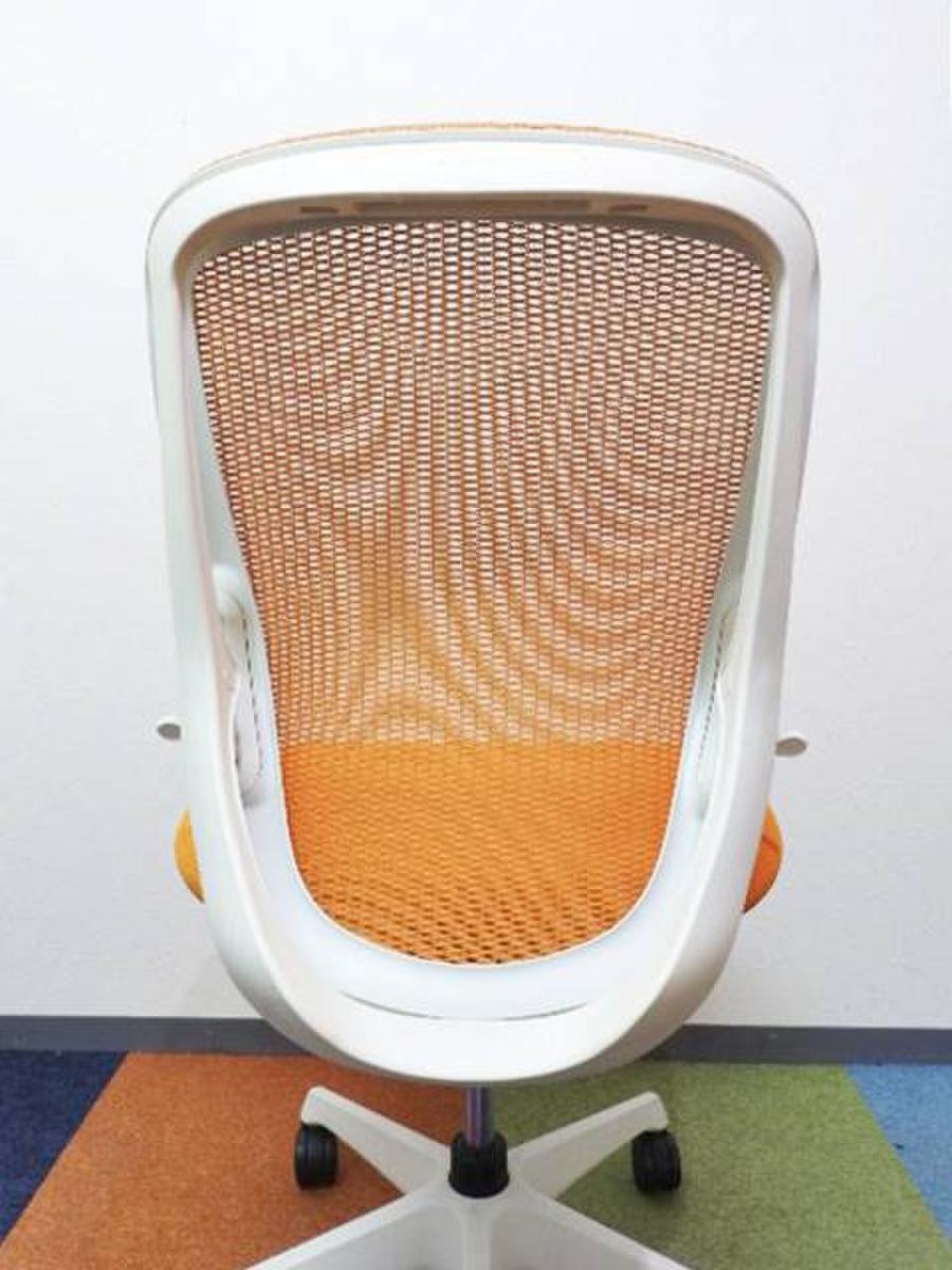 【包み込まれるような快適な座り心地!】■オカムラ シルフィーチェア オレンジ ホワイトボディ ■背のカーブを変えられる!新感覚のオフィスシーティング!【Okamrua Sylphy】- 川崎店