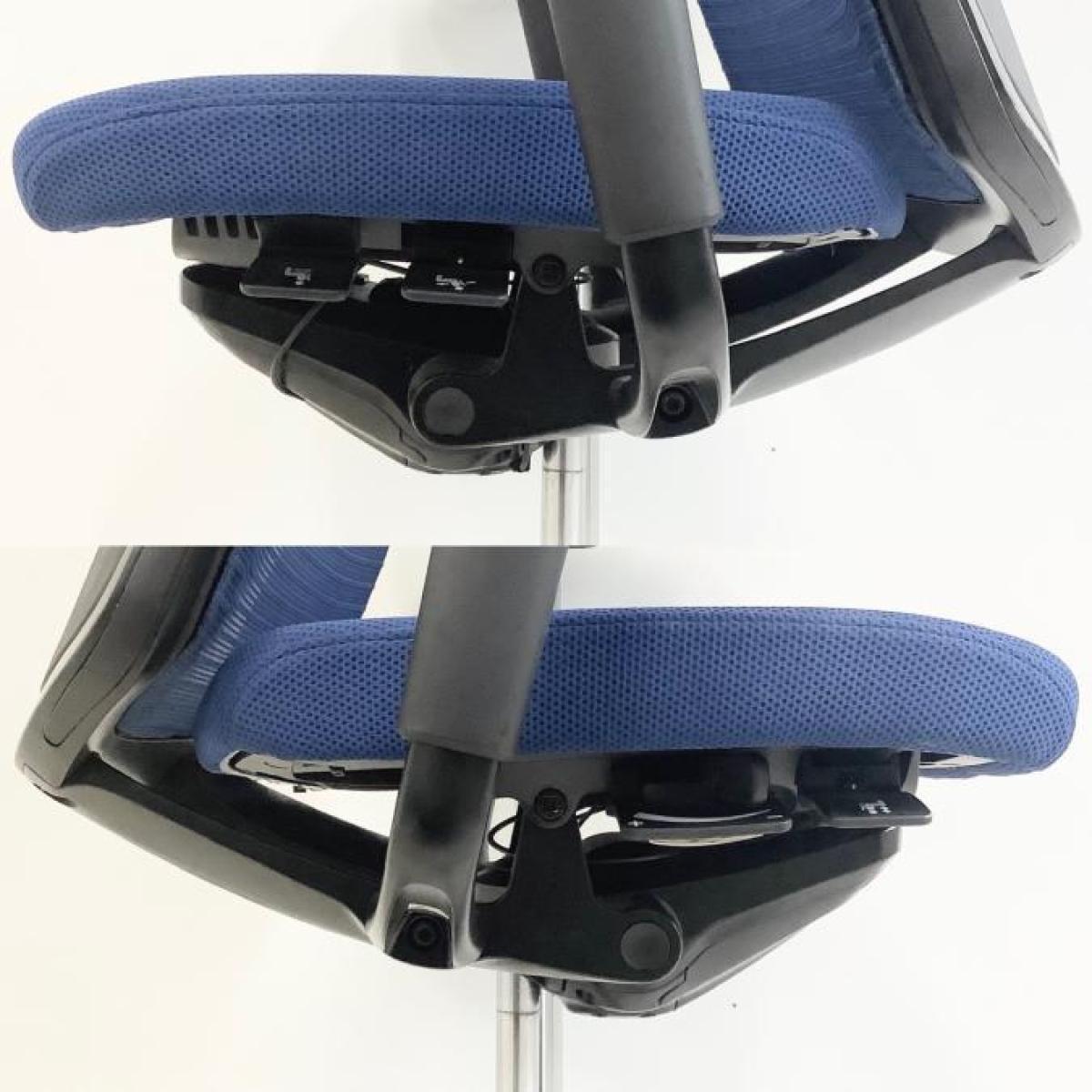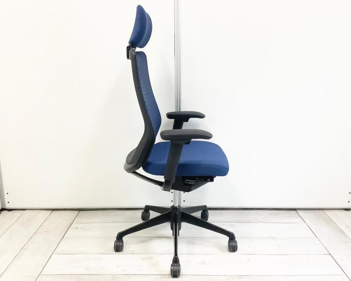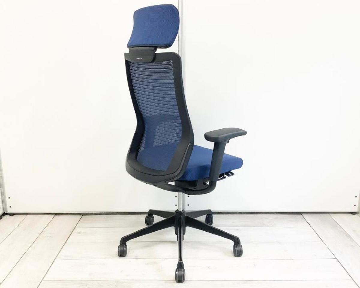 【在庫入替セール】【5脚入荷】【どんな空間にも調和するデザインと最上級の操作性!背面メッシュで通気性抜群!】■オカムラ(okamura)製 コーラル (Choral) 肘付ハイバック ■ミディアムブルー ■メッシュ背面 ■可動肘 ■ハンガー付【K】【T8】