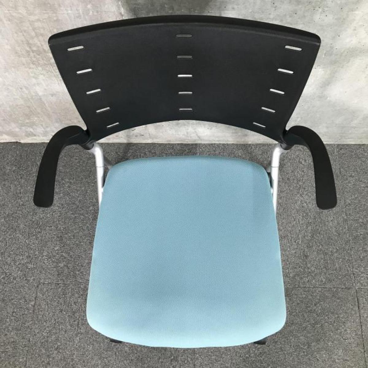 【平行に重ねて省スペース!使い勝手抜群のミーティングチェア!】■イトーキ (ITOKI) マノス (MANOSS) チェア ネスティングチェア ミーティングチェア 肘付き 背パッドなし ■背:ブラック/座ブルー × ブラックシェル ■キャスター付【T8】- 大阪・堺店
