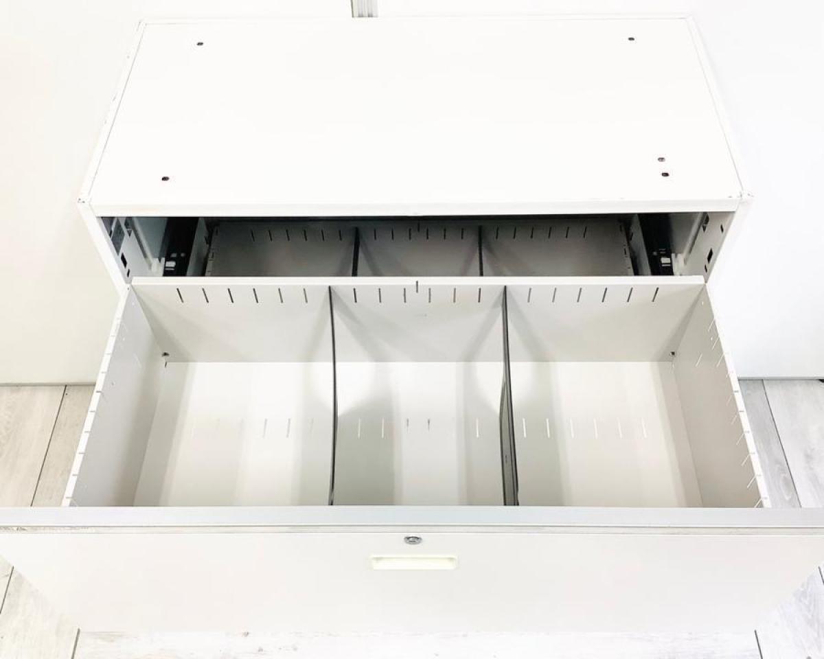 【珍しい2段ラテラルタイプ!】耐久性・機能性を兼ね備えたキャビネット!スペースにジャストフィットする引き出し型収納 ■イトーキ/シンライン/ホワイト シリンダー錠