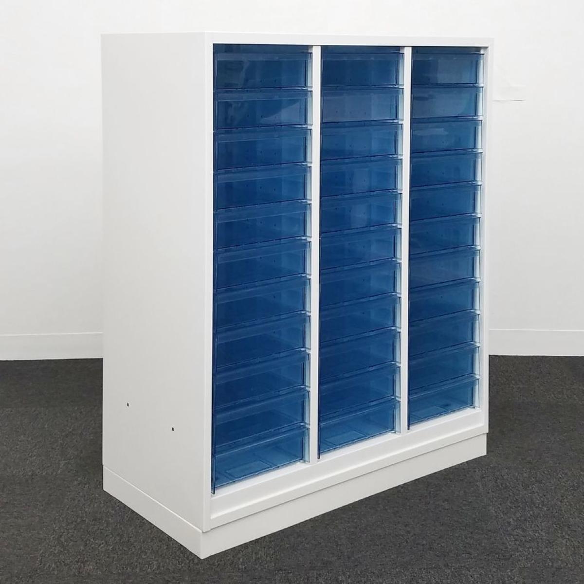 【お買い得品!】人気のクリスタルトレイ書庫入荷!清潔感のあるトレーブルー仕様!深型11段 3列 計33段 ■コクヨ/エディア/ホワイトサーキュラーバリューCO2削減量の算出について