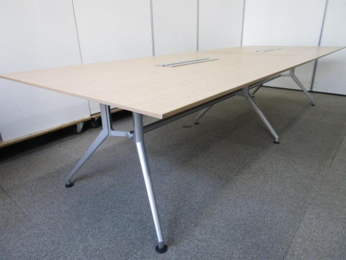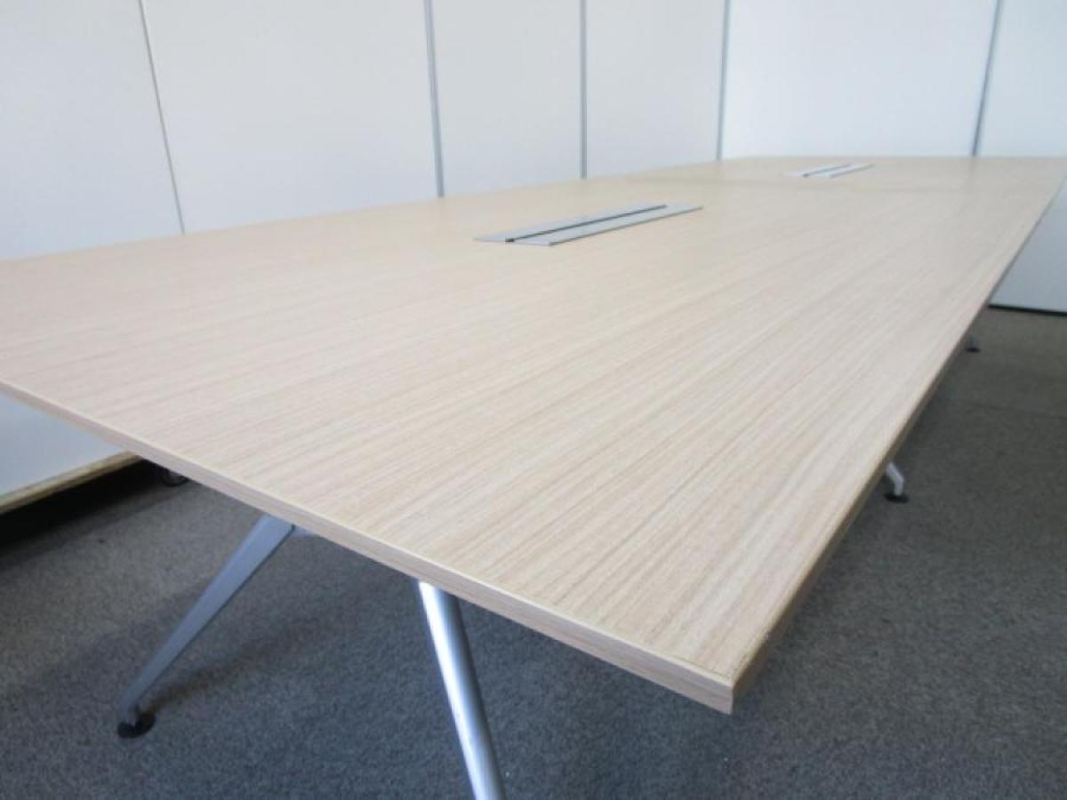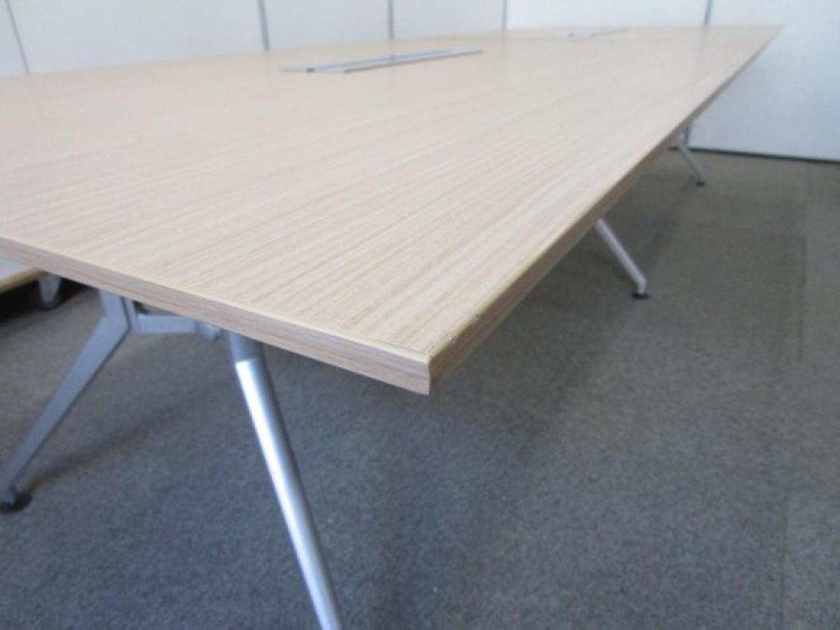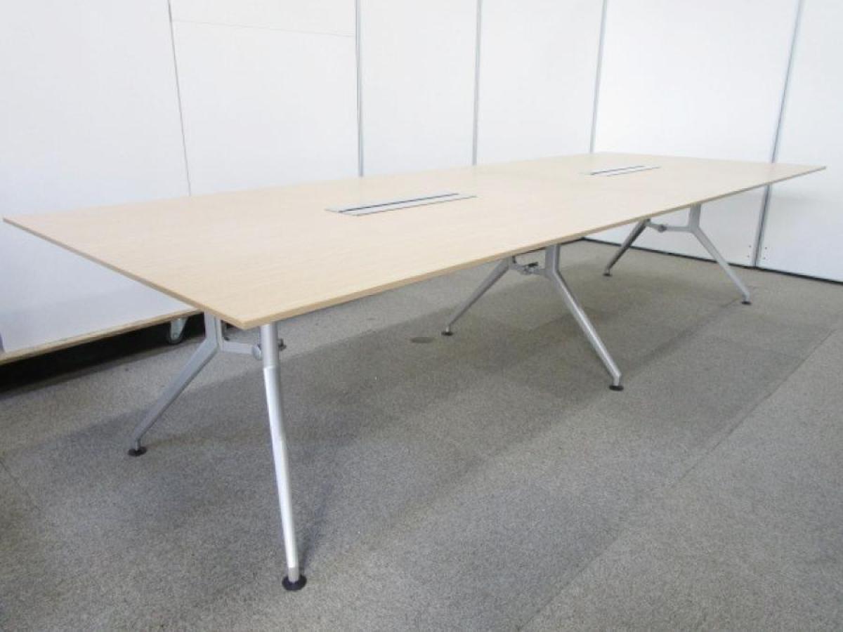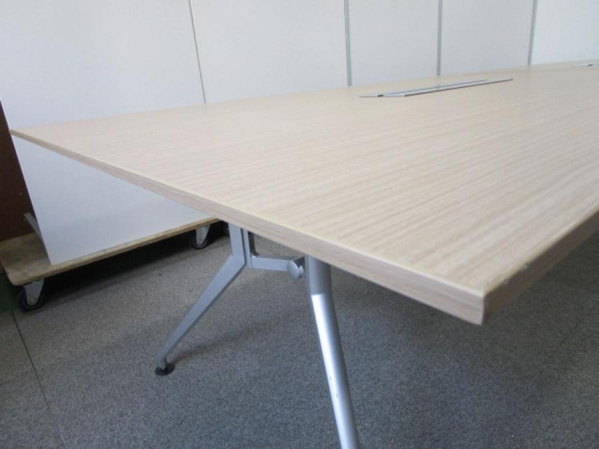 【会議室だけでなく休憩室でも!6~8名様対応・大型テーブル】■イトーキ(ITOKI) DDDシリーズ ミーティングテーブル 会議テーブル 幅2400×奥行900mm ■木目ナチュラル天板 脚シルバー色 オフィスバスターズ東大阪店