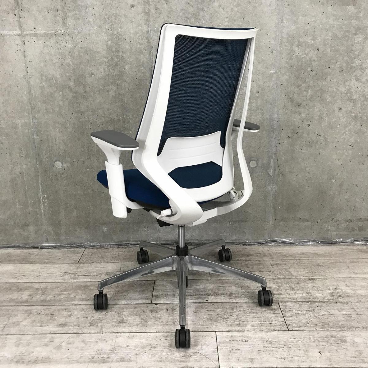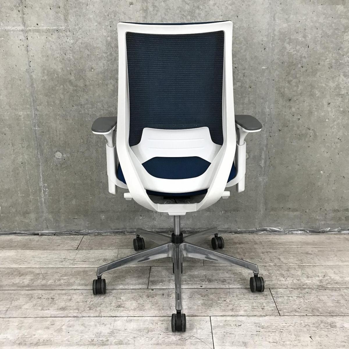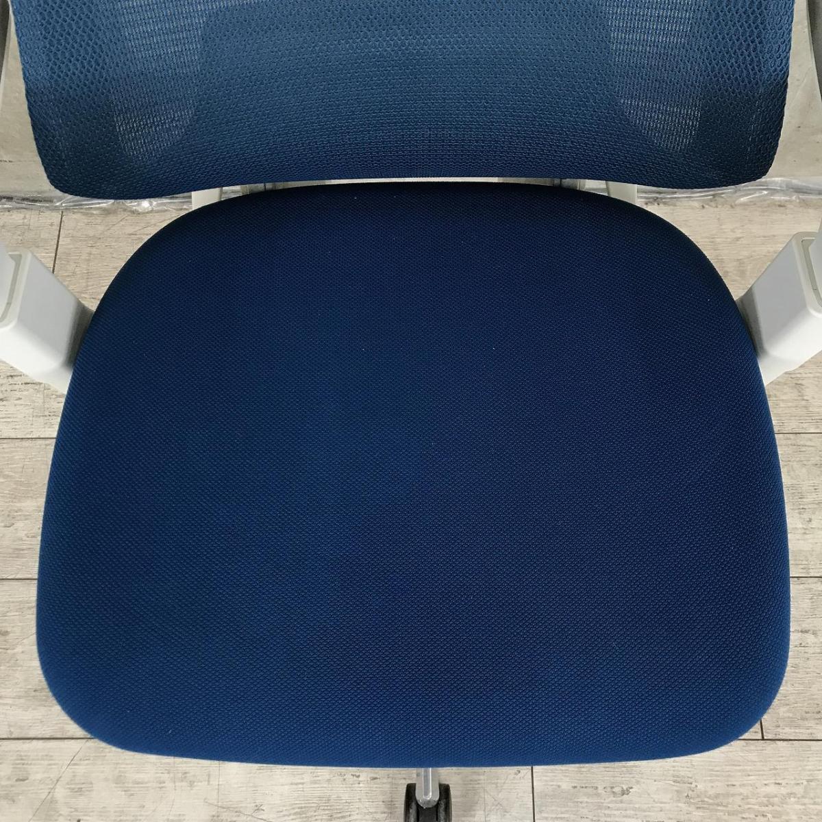 ■KOKUYO/コクヨ ■デュオラ(Duora)チェア ■プルシアンブルー×ホワイトシェル×ブラック脚 ■肘付き/可動肘 ■ハイバック ■背面/メッシュ 座面/布 ■コートハンガー付き ■オススメ/人気/定番商品 【弊社使用欄:A01040309 K】【ID】