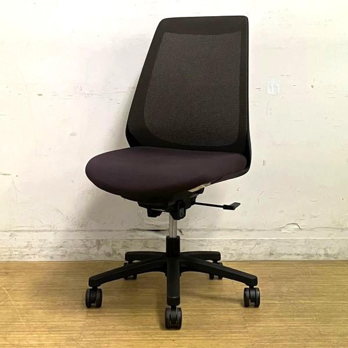 【2023年製】イトーキ ノナ プレーンメッシュ 肘無しチェア 背:チョコレートブラウン 座:パープル ブラックフレーム コンパクトなサイズ感で女性におすすめ- 名古屋千種店