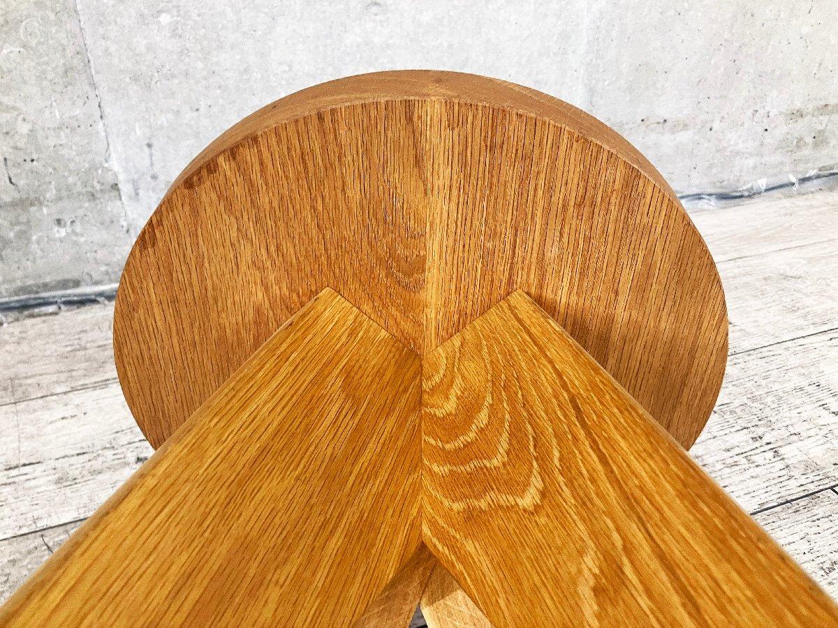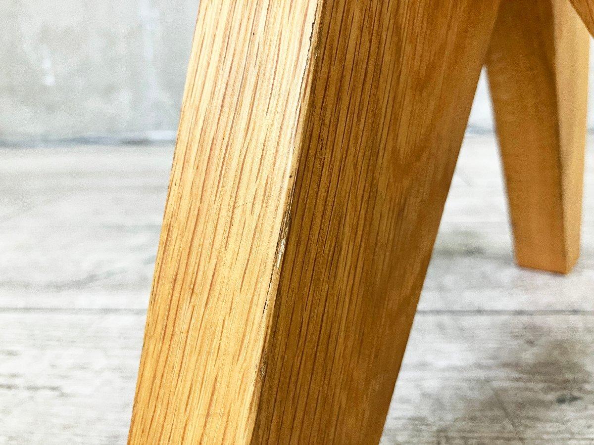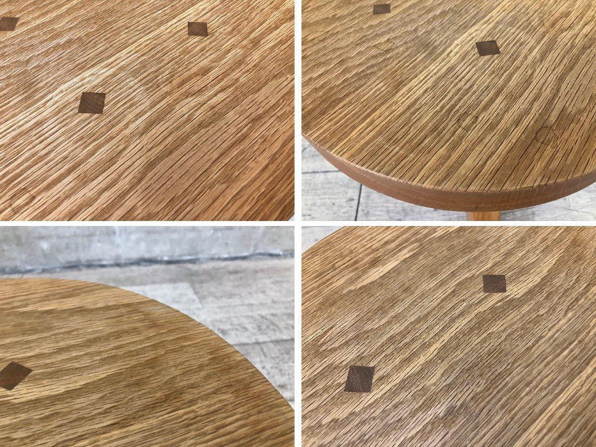 脚と天板とを接合する角栓は、樹種の異なる無垢材にすることでプレーンな天板のアクセントとなっている。