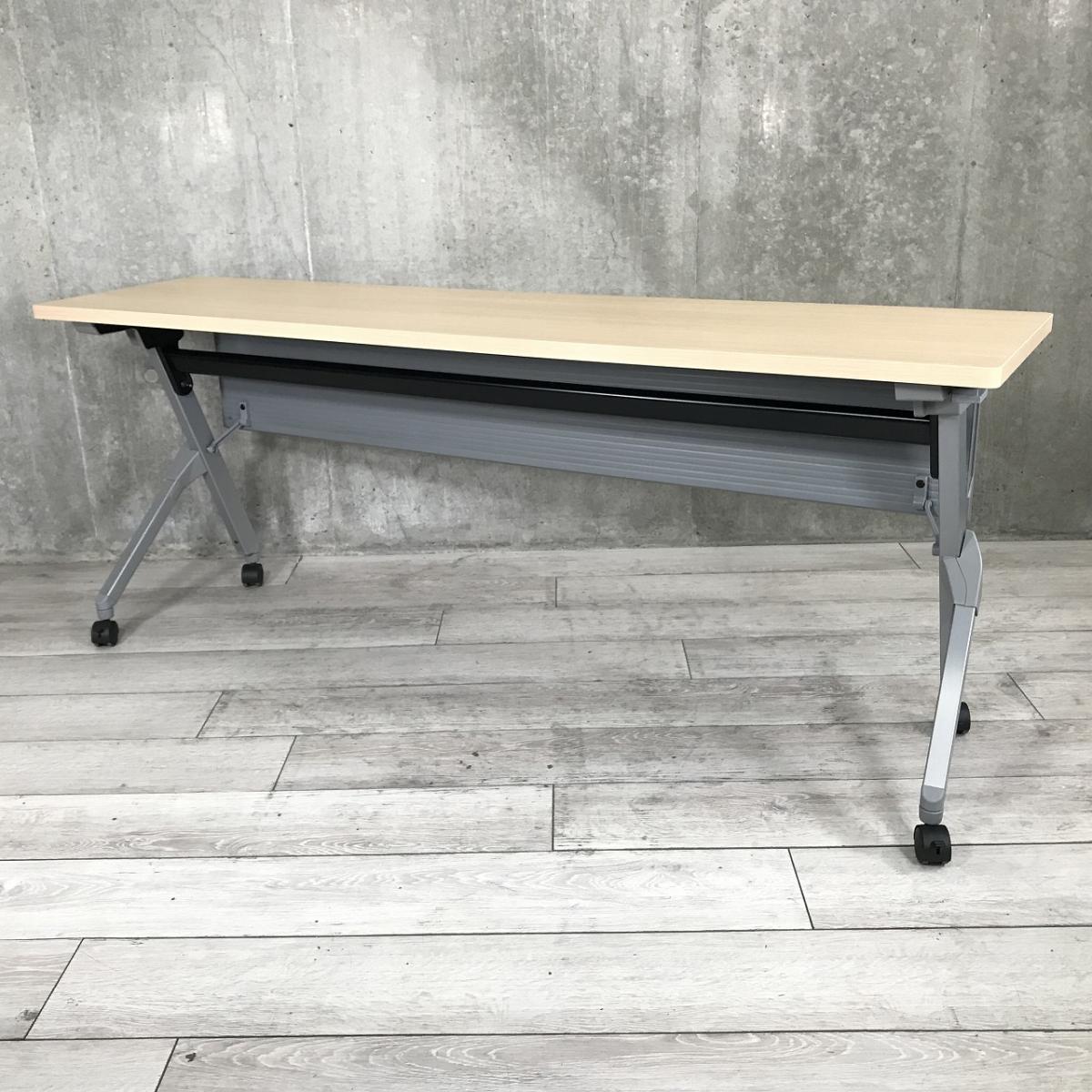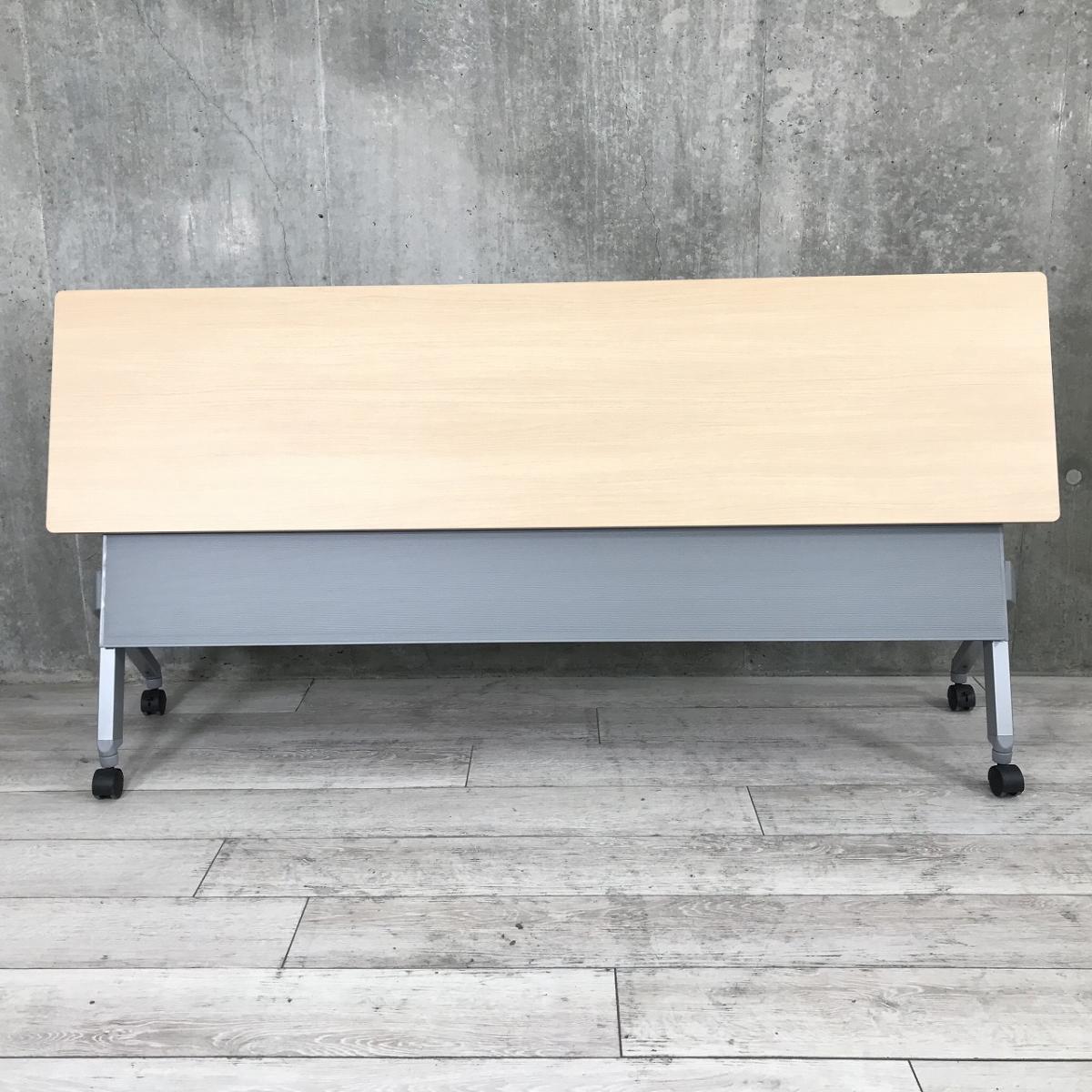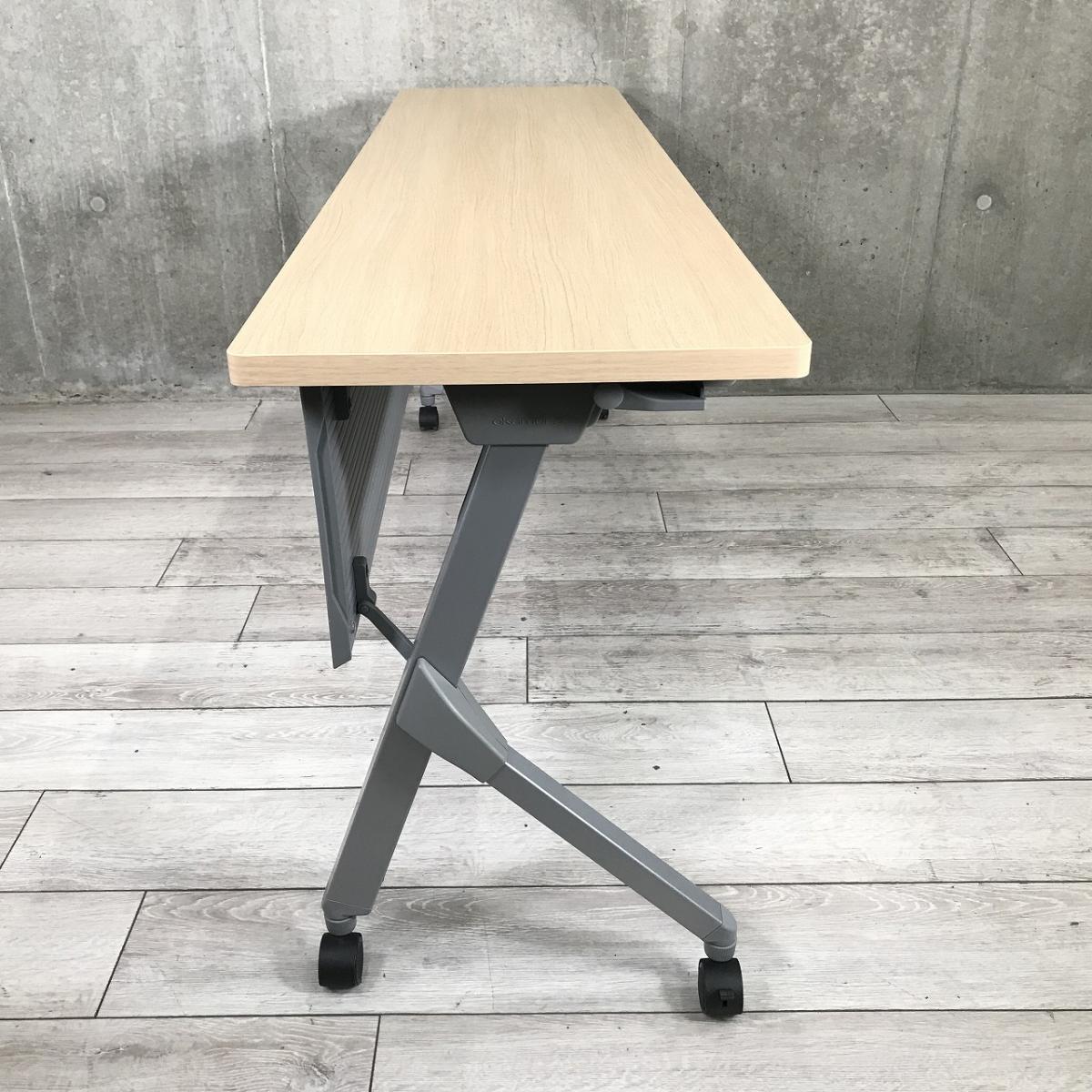 【W1500の折り畳みテーブルが入荷!】◆オカムラ/フラプター ナチュラル 木目 サイドスタックテーブル 収納 中古 博多 天神 九州最大級 オフィスバスターズ