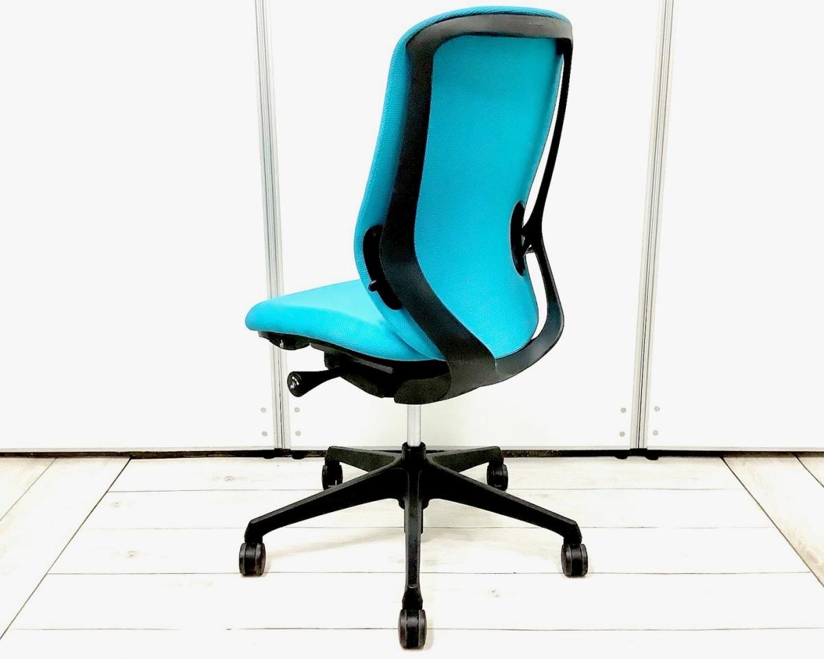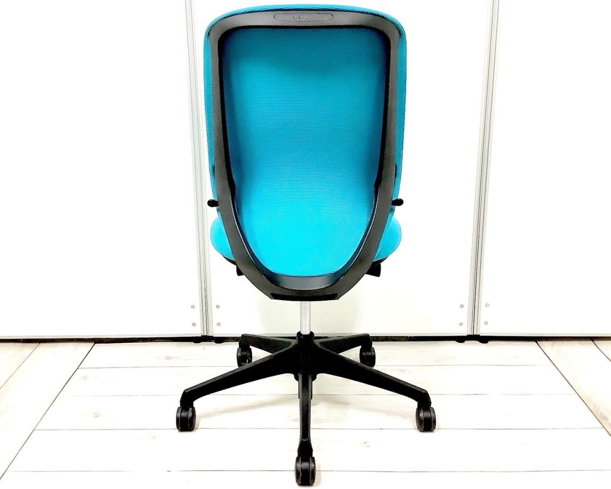 オカムラ シルフィ 肘無しハイバック ブルーグリーン×ホワイトフレーム ポリッシュ脚 前傾機能付き メッシュ