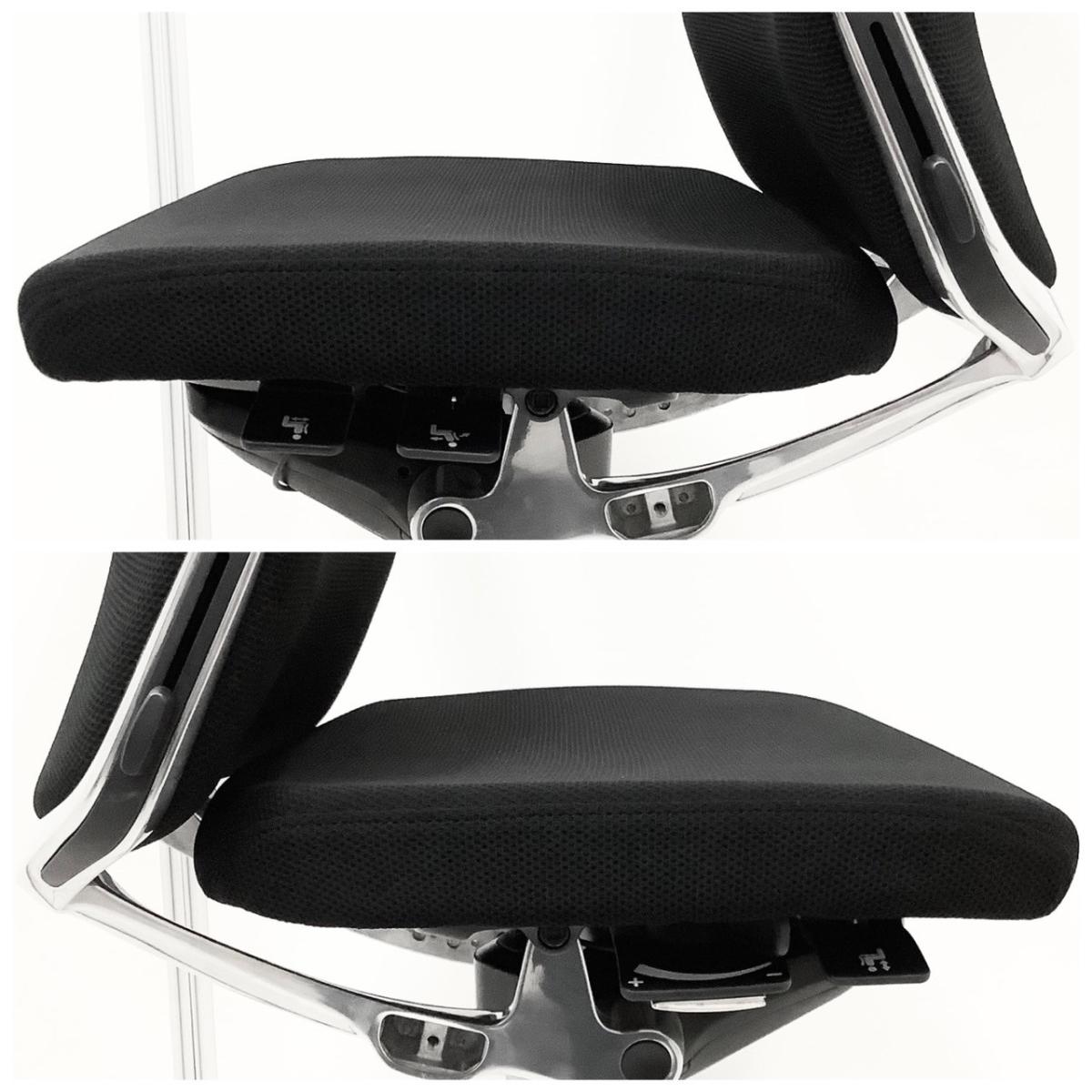 - リクライニングの固定と解除、リクライニング反力の強弱、座面の高さ調整、座面のスライド調整の操作を、すべて座面の裏側に集約。すべての調整を無駄な動きをすることなく、座ったままの状態で行えます。