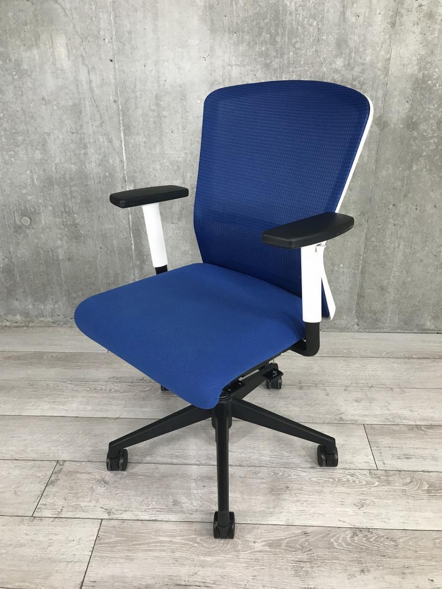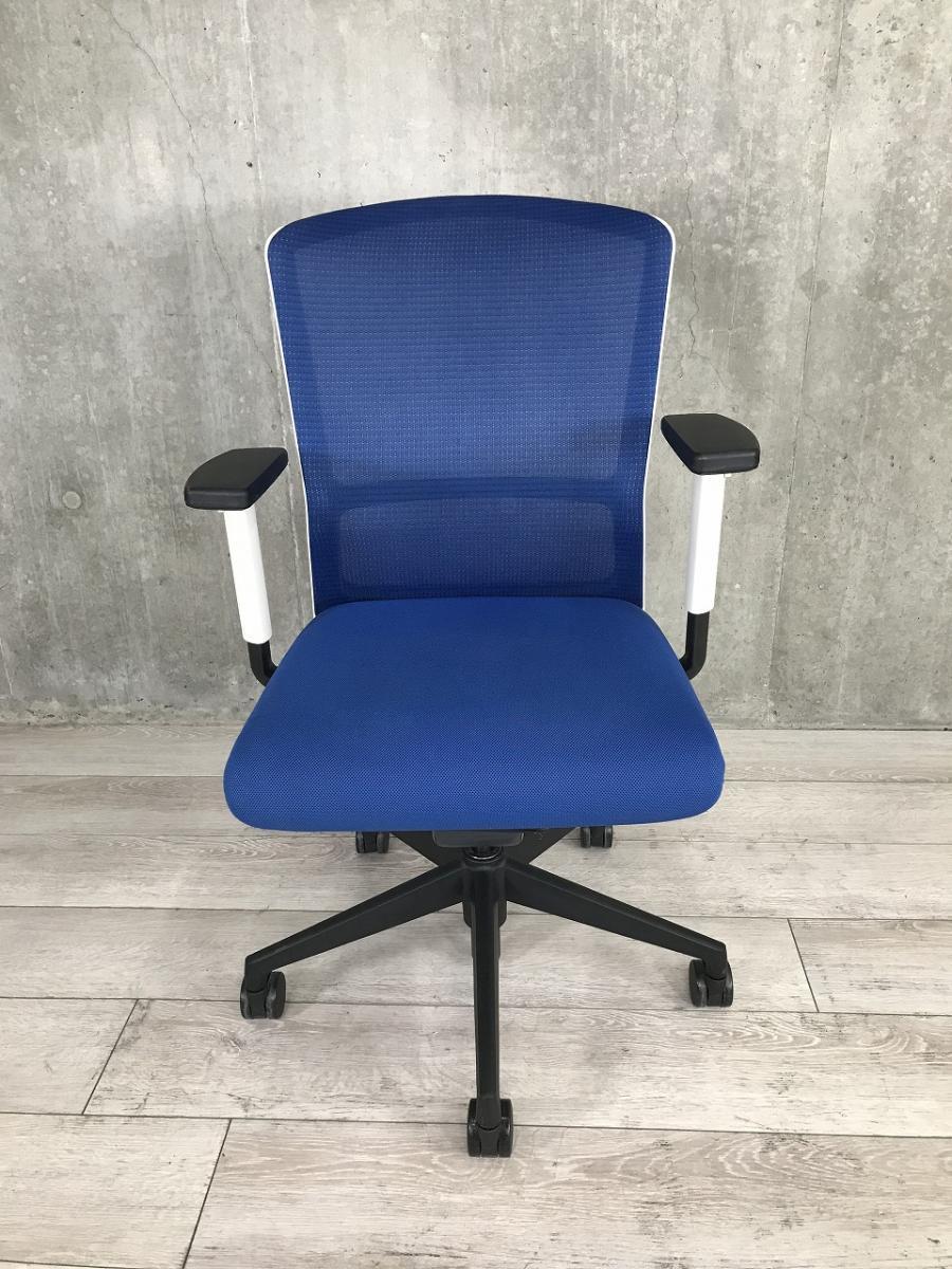 【在庫セール品・3脚限定】【T8】■内田洋行(UCHIDA)エルフィチェア 肘付ミドルバック ■色:ブルー 【メッシュチェアをお手頃価格で!!可動肘も付いている高機能チェア!!】- 新大阪店