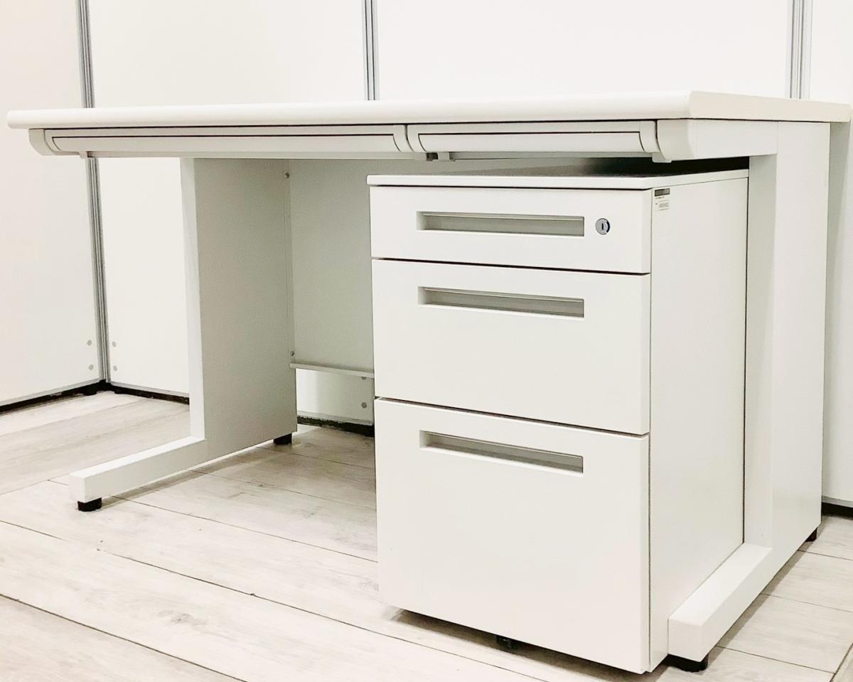 【片袖机セット(デスク&ワゴン)】疑似片袖デスク オススメ(おすすめ) 大人気 ・LION/ライオン事務器 ・ホワイト- 春日部・越谷店