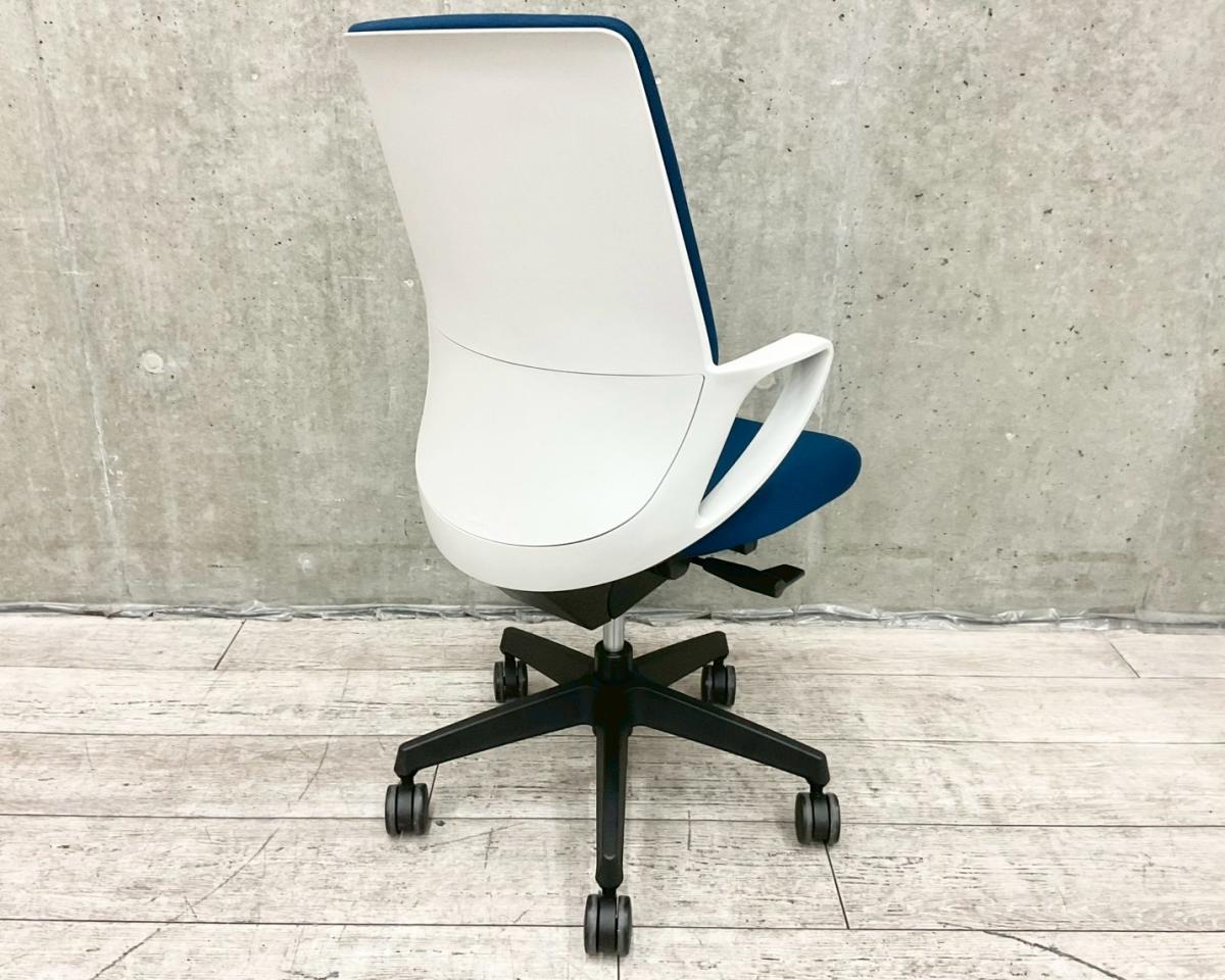 【デスクにスッキリ収納できるコンパクト設計!スマートデザインで使い勝手抜群!】■コクヨ(KOKUYO)製 ピコラ(picora)チェア 肘付き ローバック ■サークル肘 ■プルシアンブルー×ホワイトシェル×脚ブラック※背面日焼け有