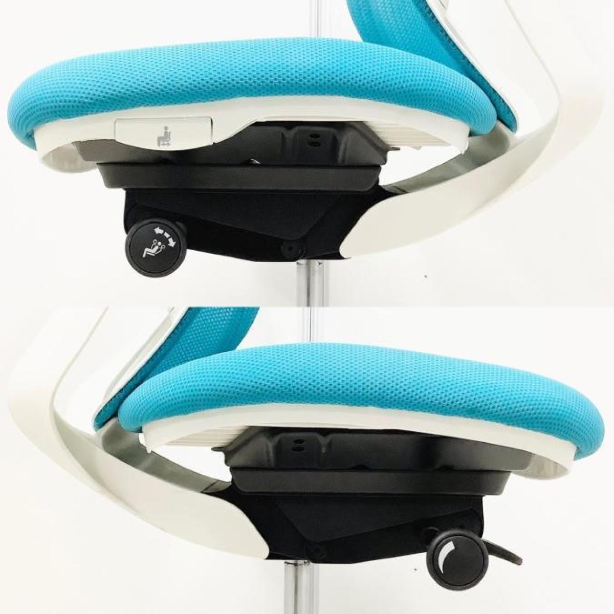 背のカーブを変えられる!前傾機能付きの新感覚のオフィスシーティング!包み込まれるような快適な座り心地! ■オカムラ/シルフィーチェア/ブルーグリーン コートハンガー付