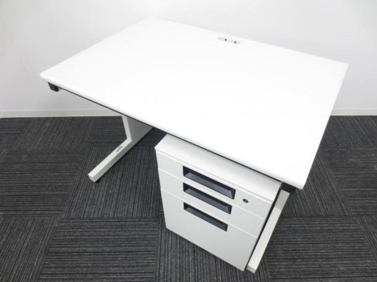 【横幅1000サイズ!】プラス(PLUS)/フラットライン/ホワイト/平机+ワゴンセット- 春日部・越谷店