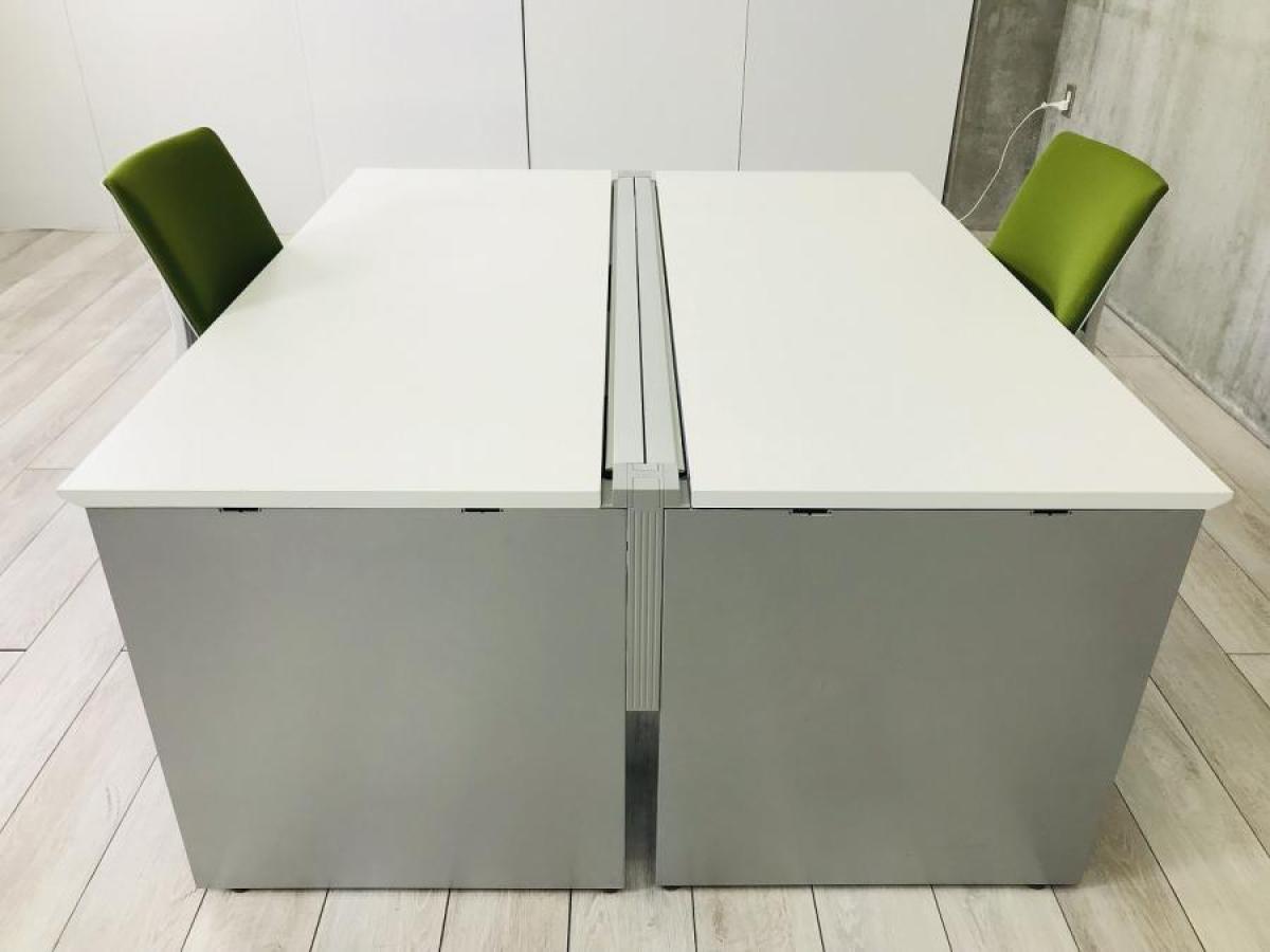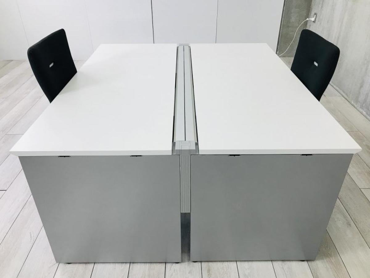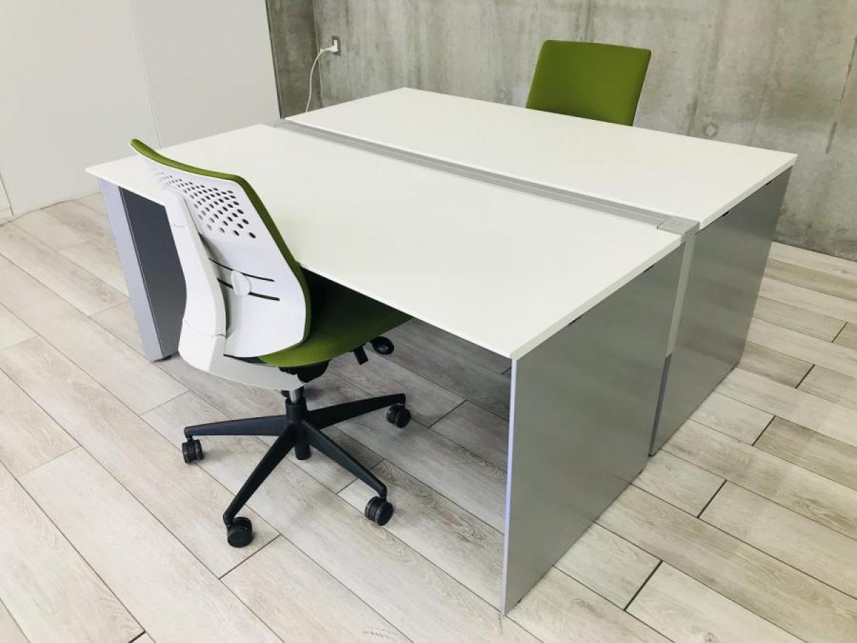【倉庫在庫品】コクヨ製・『ワークヴィスタ』入荷!!【W1600】タイプ!2人使用で、一人使用サイズがw1600で使用でき広々お使い頂けます。解放感とコミュニケーションをアップさせてくれるデザイン!2人一組でチーム席としてのご使用も!!清潔感とスタイリッシュな組み合わせ!弊社使用欄【ホワイト】【脚シルバー】オフィスバスターズ 梅田本店