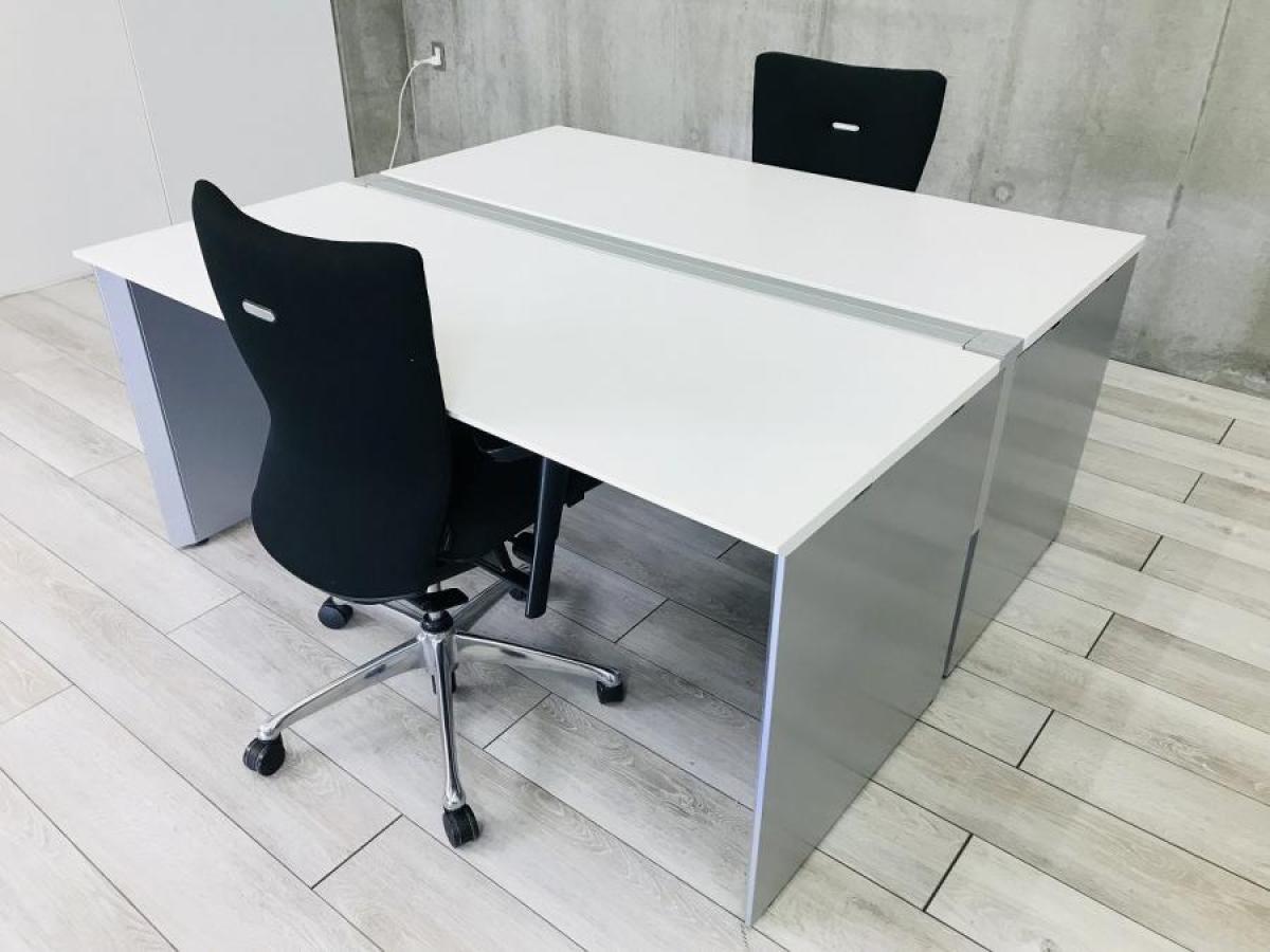 【倉庫在庫品】コクヨ製・『ワークヴィスタ』入荷!!【W1600】タイプ!2人使用で、一人使用サイズがw1600で使用でき広々お使い頂けます。解放感とコミュニケーションをアップさせてくれるデザイン!2人一組でチーム席としてのご使用も!!清潔感とスタイリッシュな組み合わせ!弊社使用欄【ホワイト】【脚シルバー】オフィスバスターズ 梅田本店- 大阪梅田本店