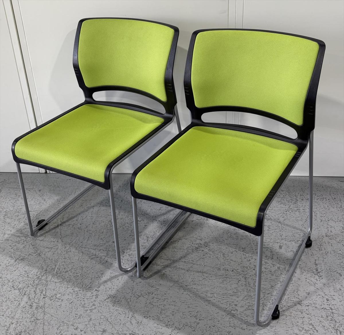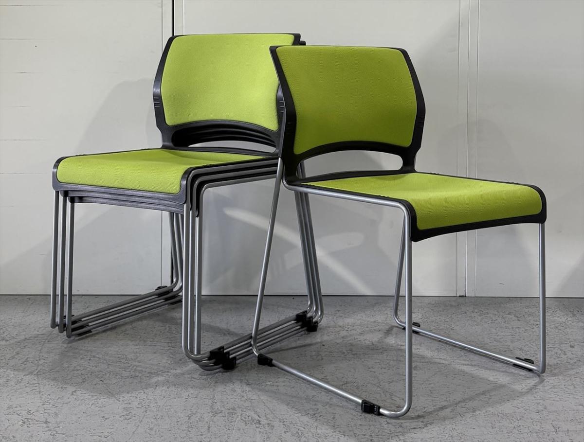 【在庫入替セール品】【シンプルなデザインで使いやすい!重ねて収納可能なスタッキングチェア!会議室、共有スペースなどに!】■オカムラ(okamura) リット(LITTO) スタッキングチェア ミーティングチェア ■グリーン × ブラックシェル- なんば日本橋店